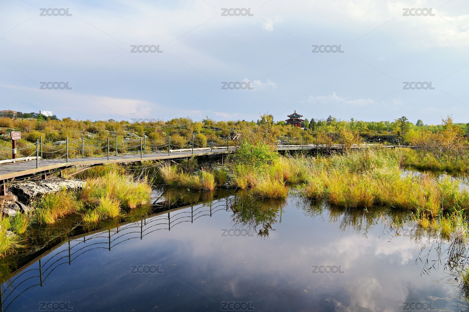 中国北京奥林匹克森林公园,秋日里的湿地景观明媚动人