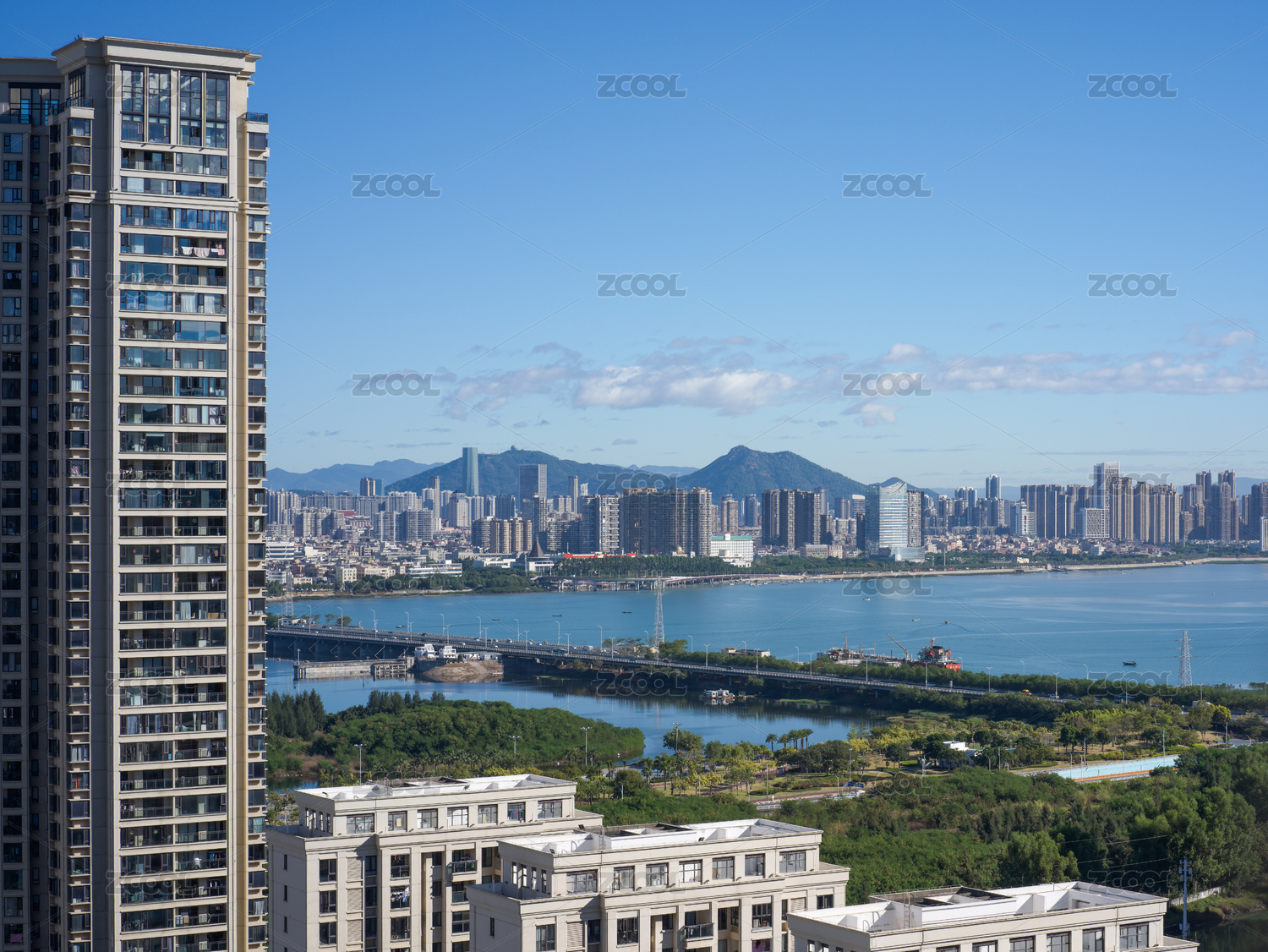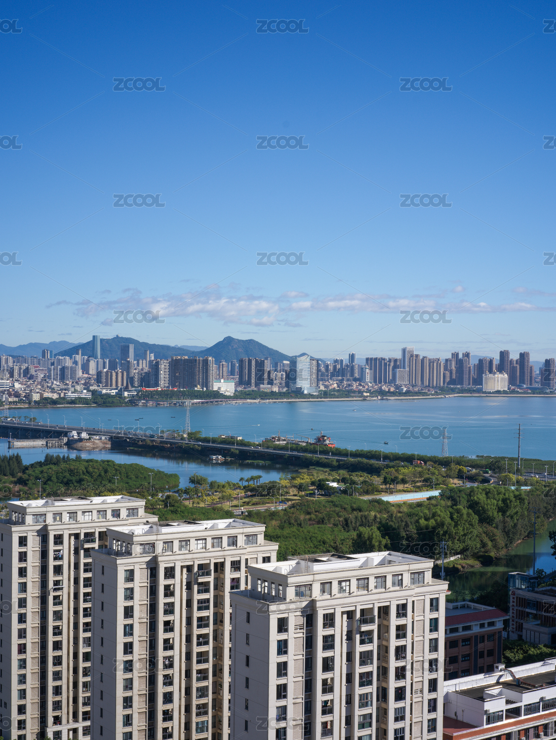 城市,天际线,海湾,建筑,桥梁,山脉,现代化,景观,厦门,海沧