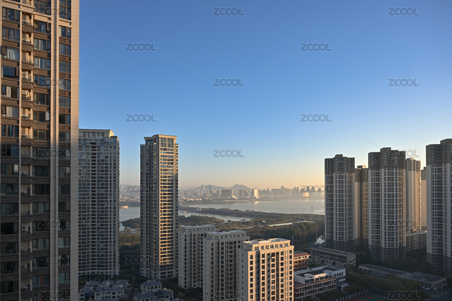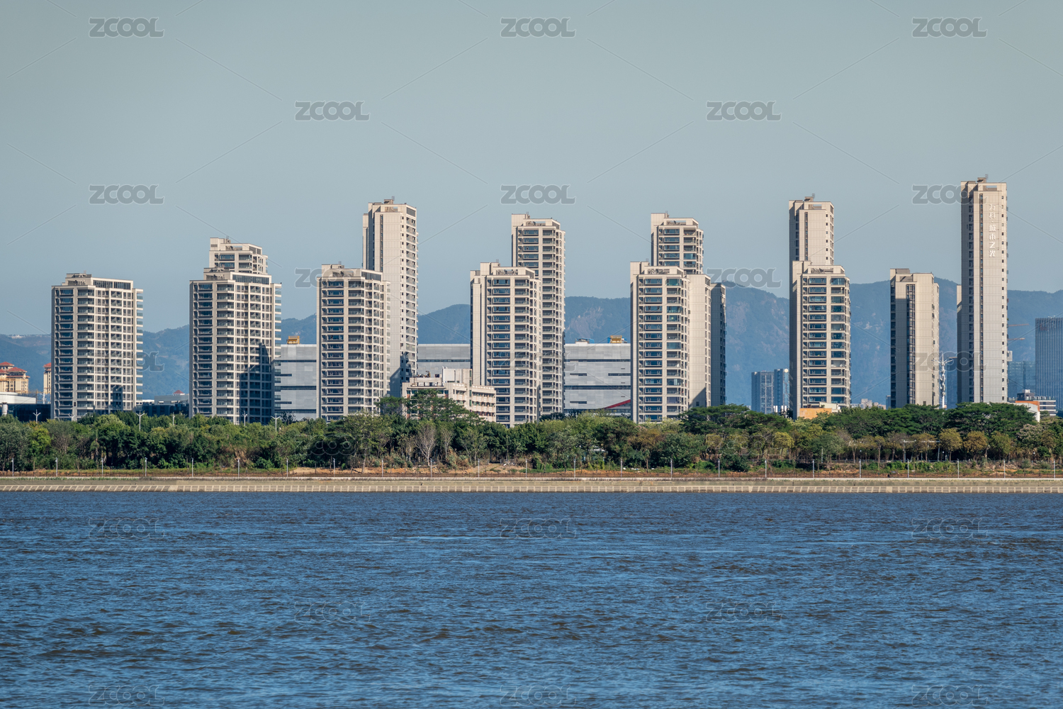 福建福州闽江眺望对岸仓山区高新产业园建筑