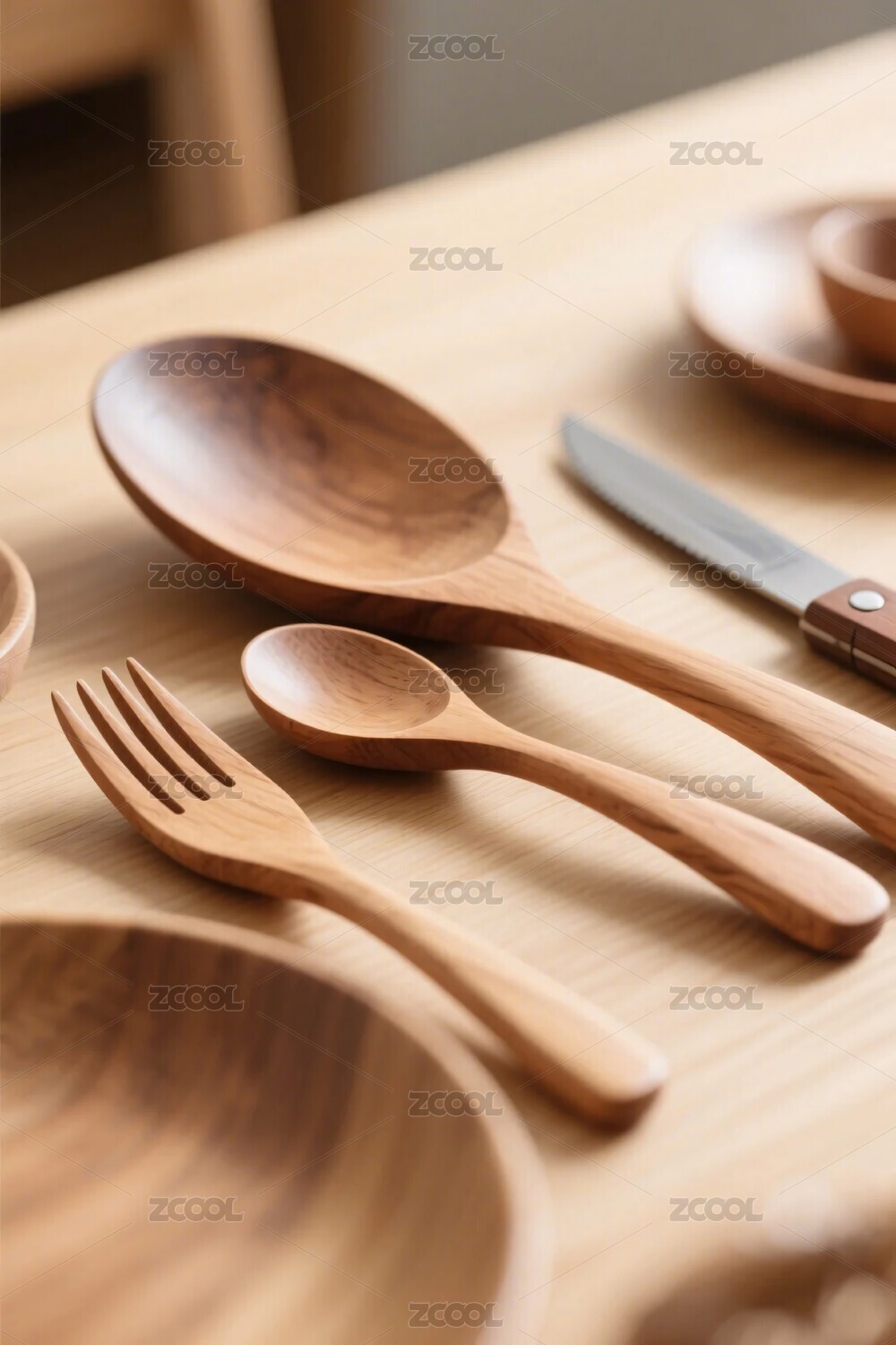 木质餐具摆放场景