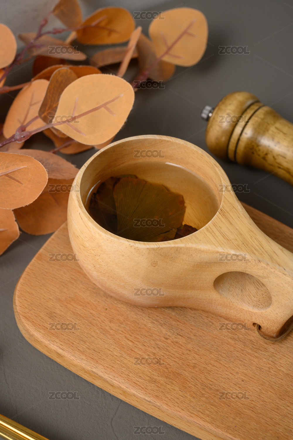 桌面上的盘子里的甘甜可口的银杏叶泡水