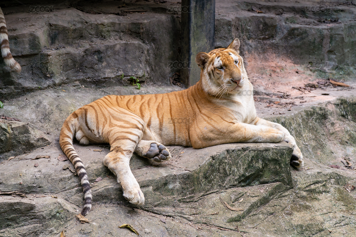 老虎,动物,猫科,卧姿,休憩,绿植,爬行类,户外,饲养,植物