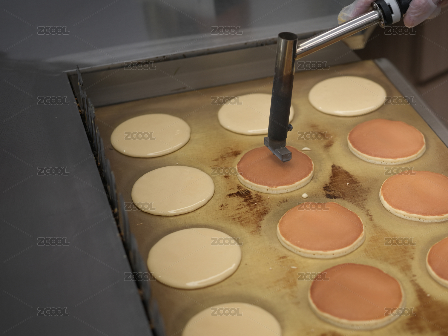 制作铜锣烧的煎制过程