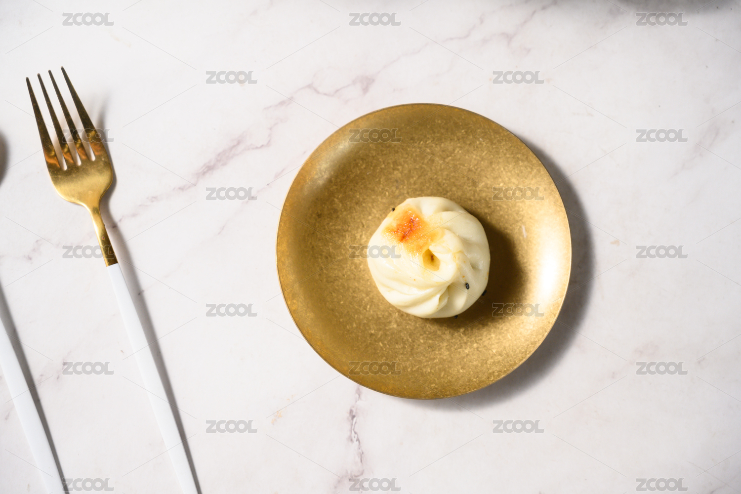 桌面上的盘子里的美味可口的肉煎包
