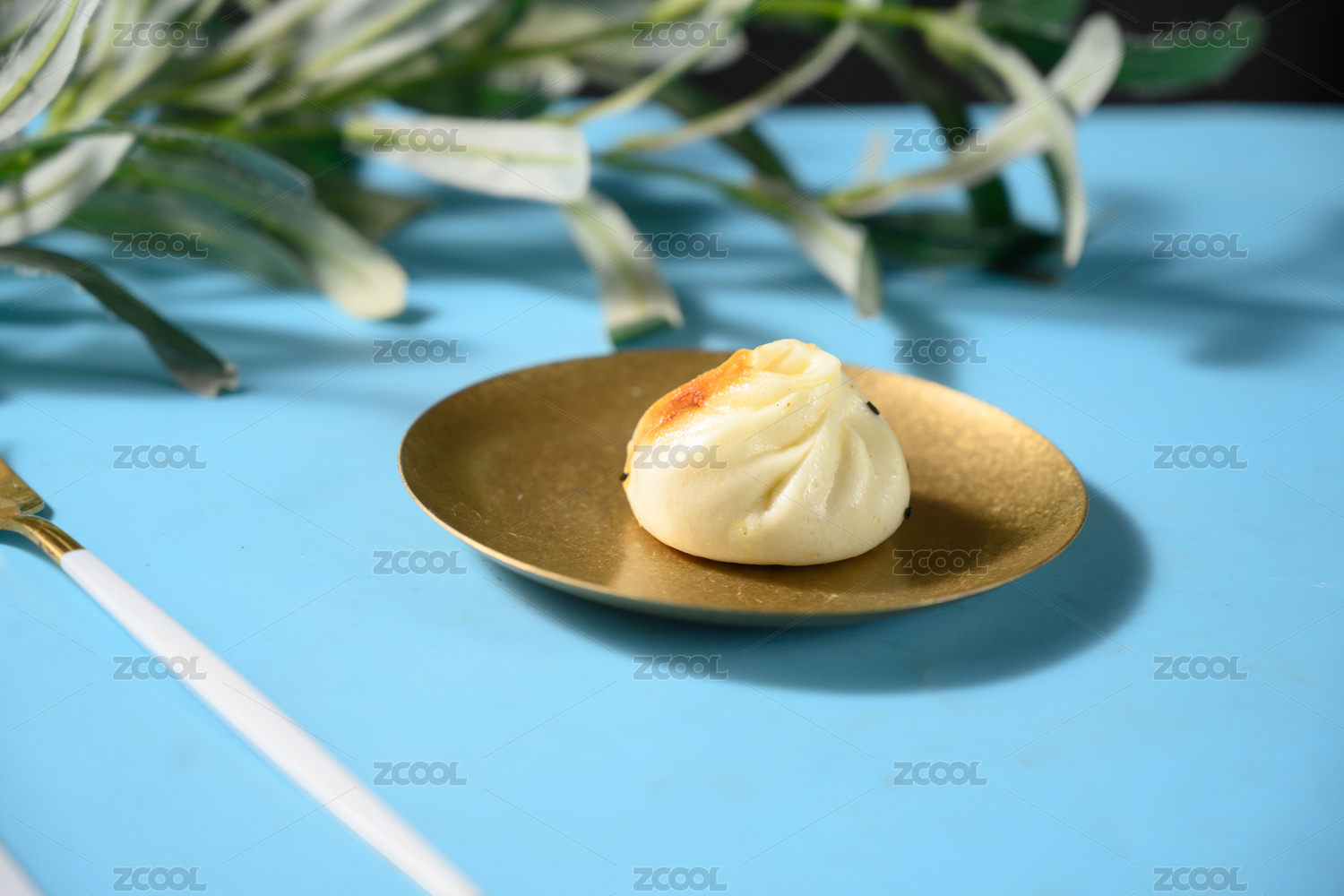 桌面上的盘子里的美味可口的叉烧包
