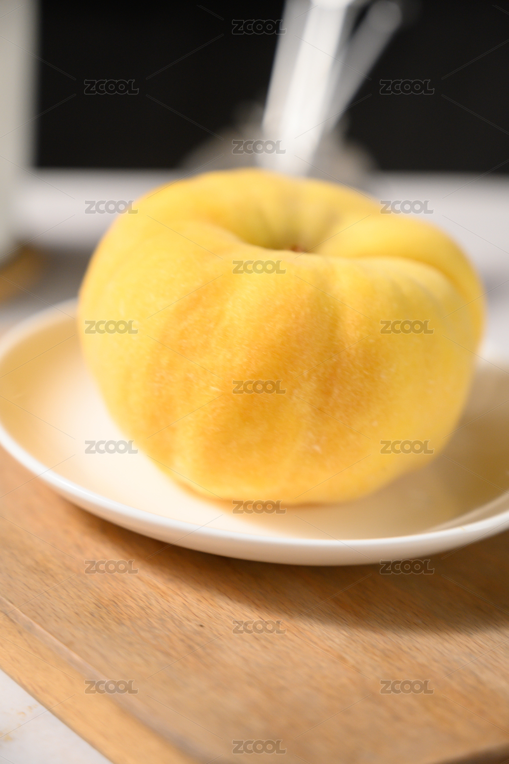 桌面上的盘子里的美味可口的蟠桃