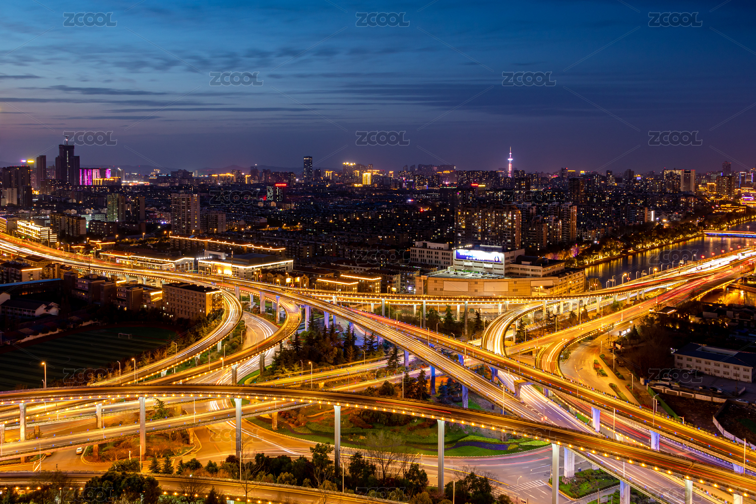 车水马龙的江苏省南京市双桥门立交桥夜景俯瞰