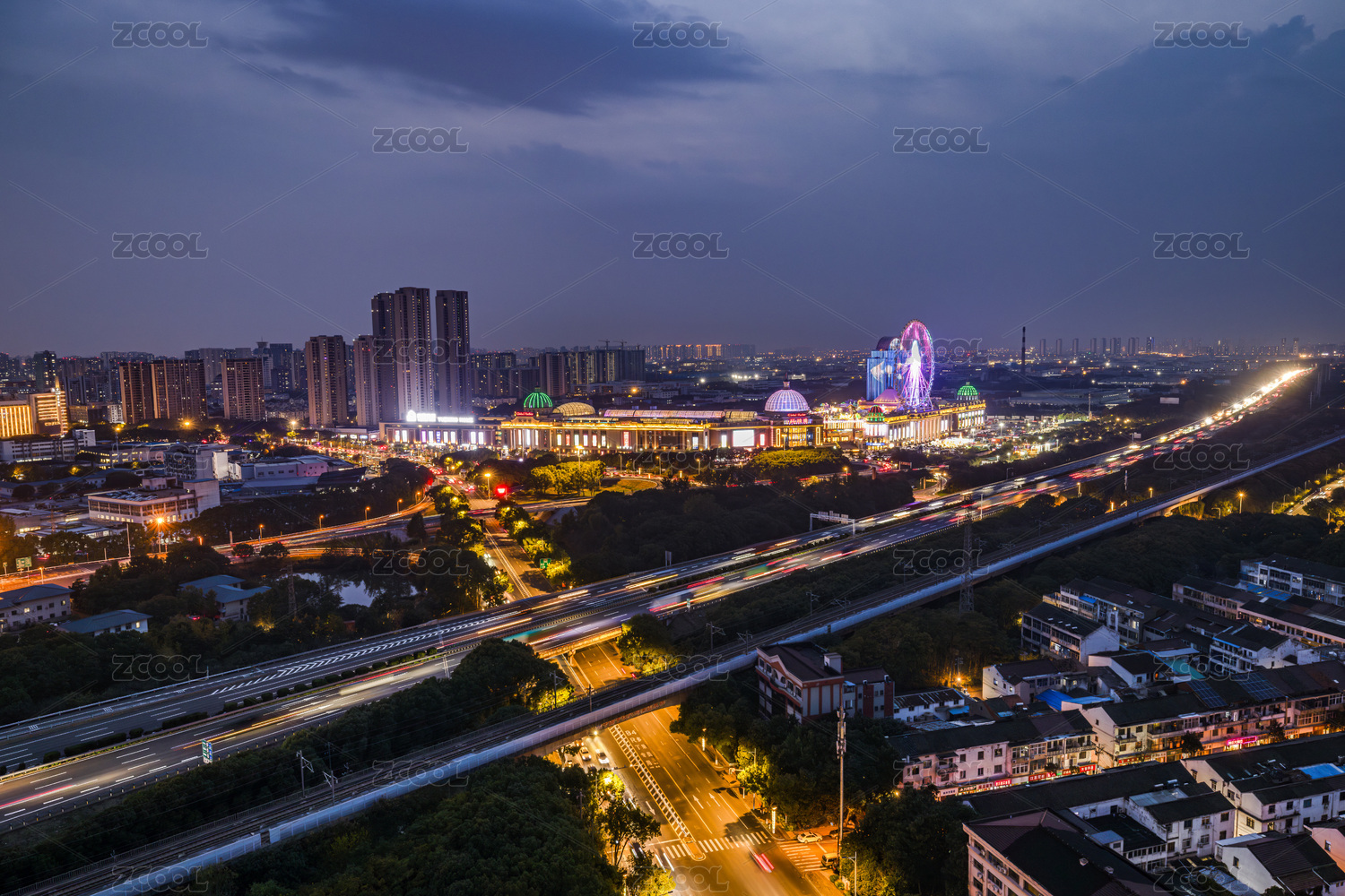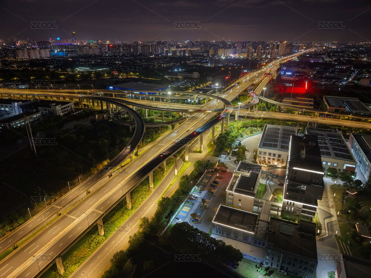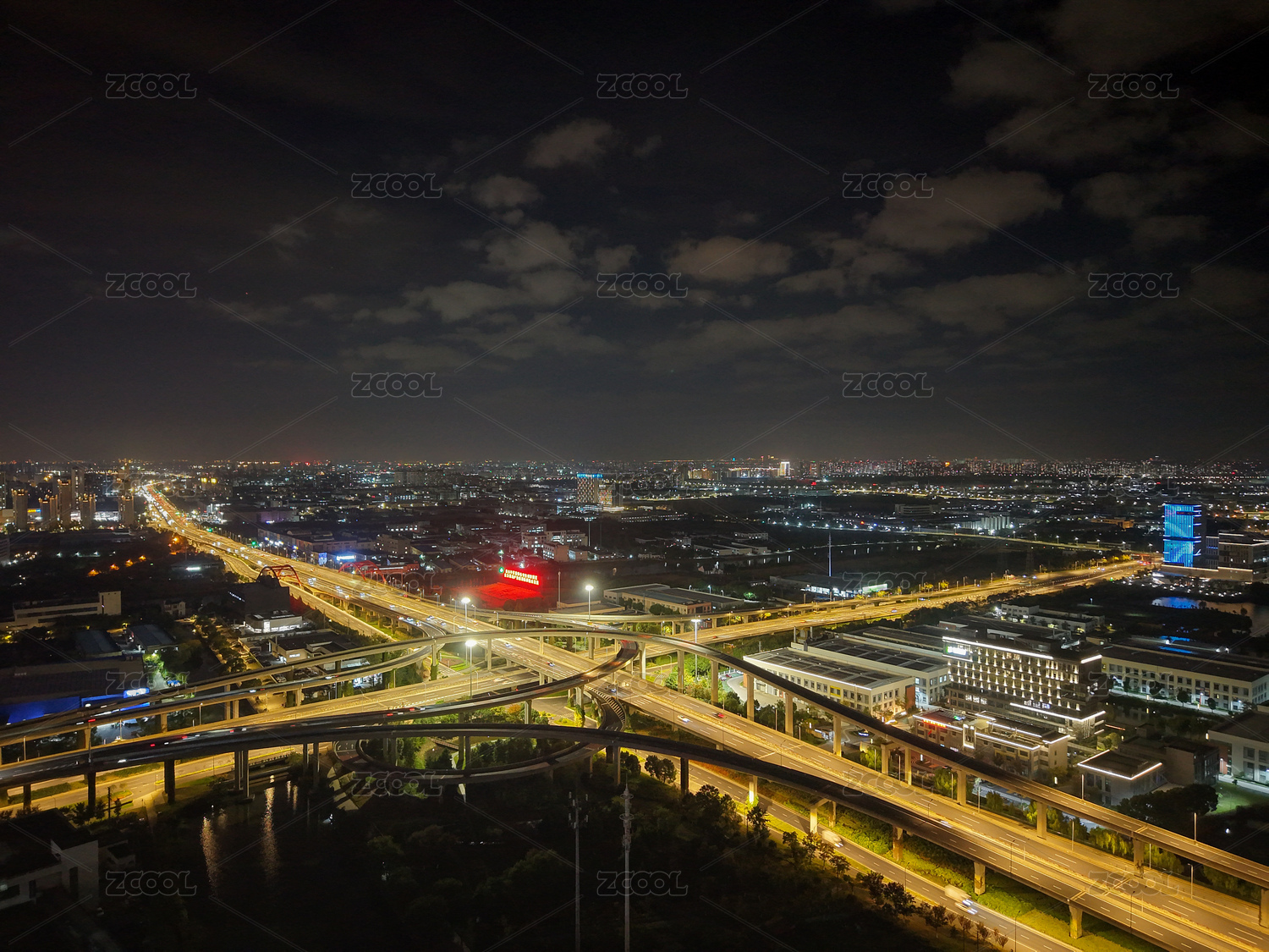 江苏,苏州,昆山,航拍,高架,夜景,生活区,企业,城市立交,车流