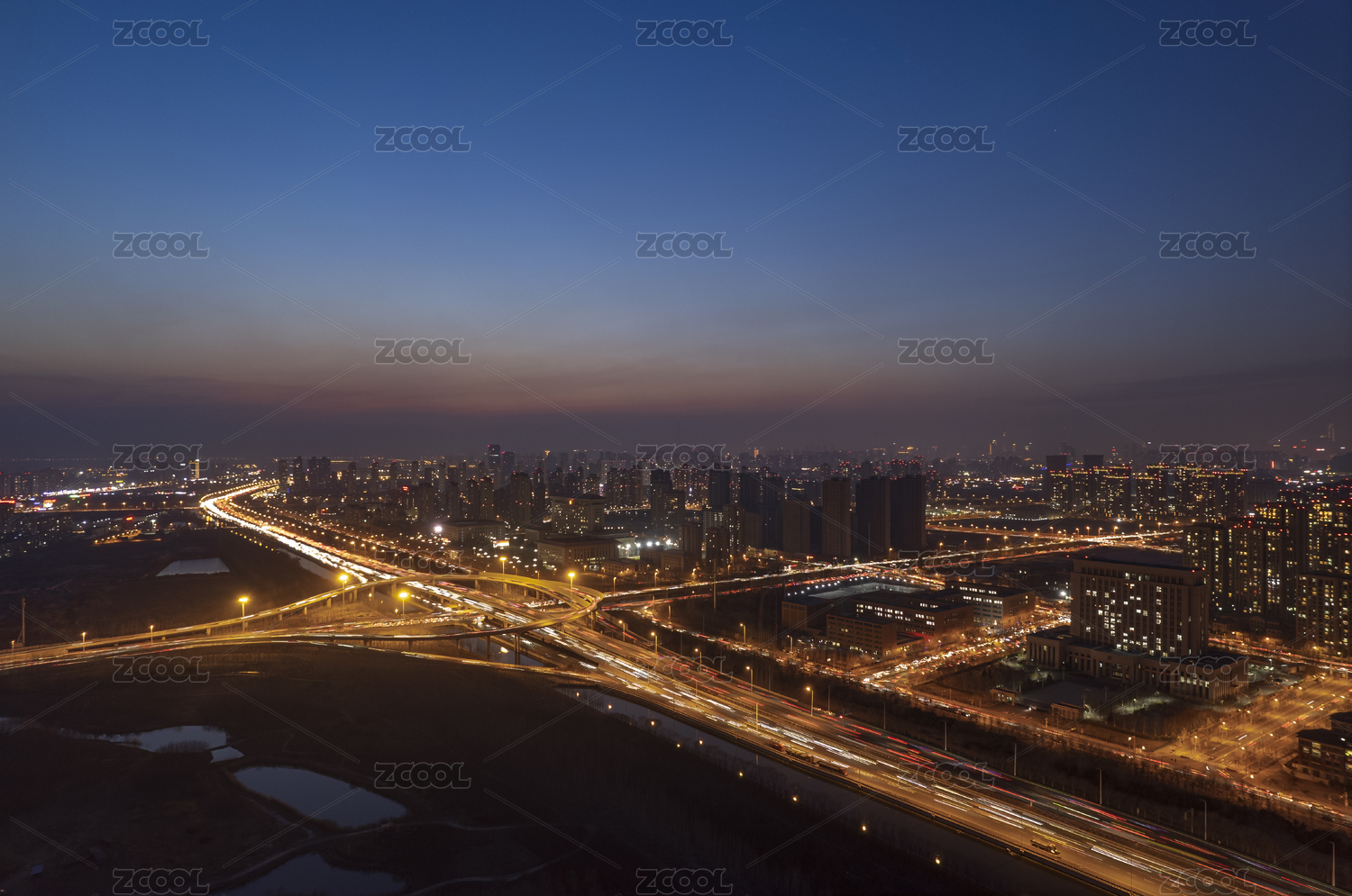 中国北京丽泽商务区玉泉营桥日落晚霞夜景
