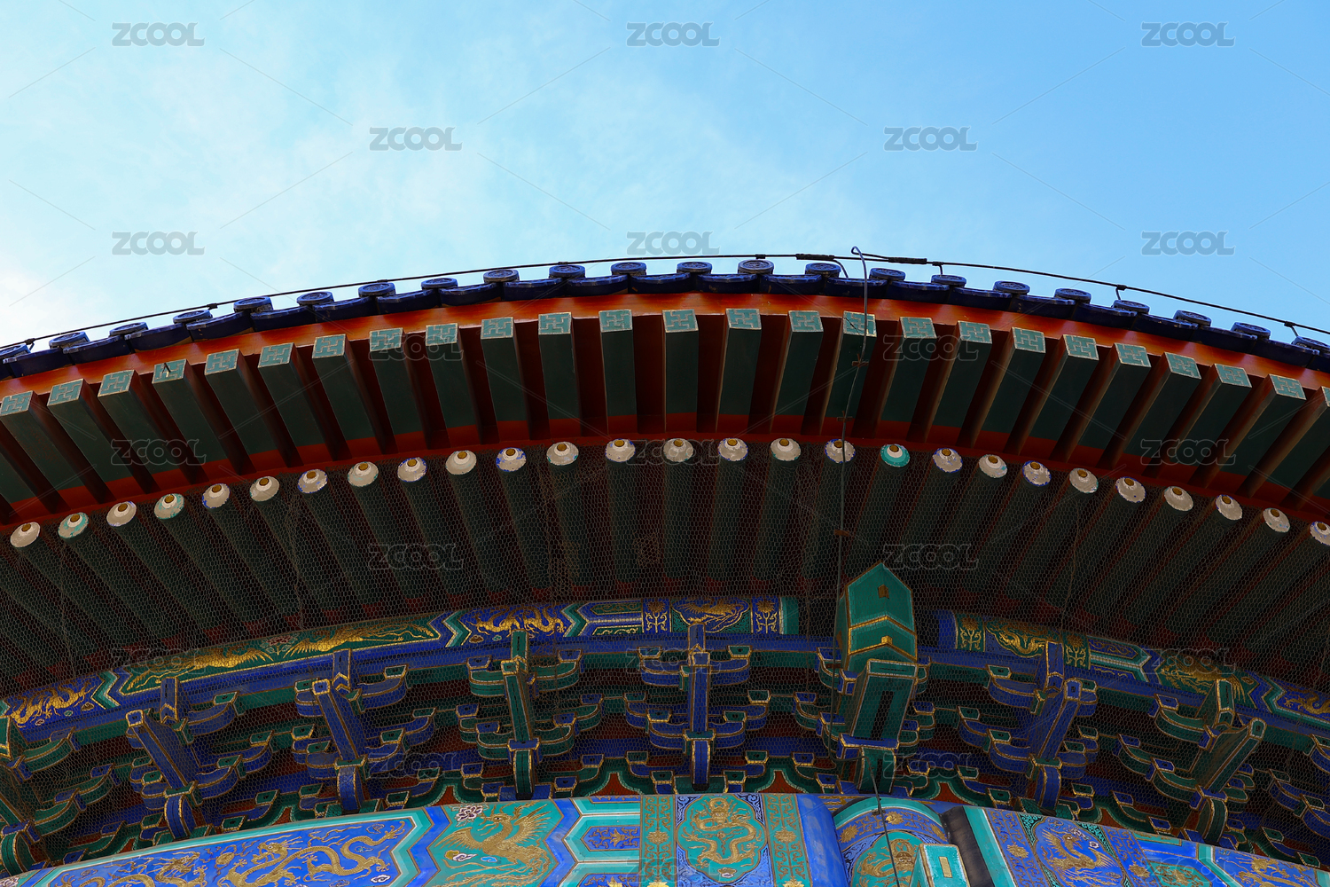 清晨阳光下的天坛皇穹宇蓝色屋顶特写