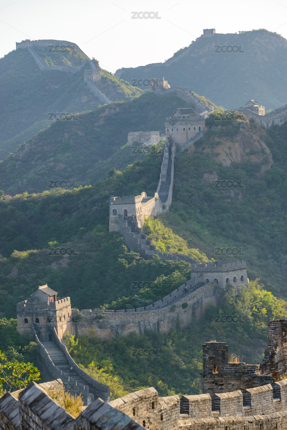 夏季北京慕田峪长城好汉坡和连绵山脉的景观