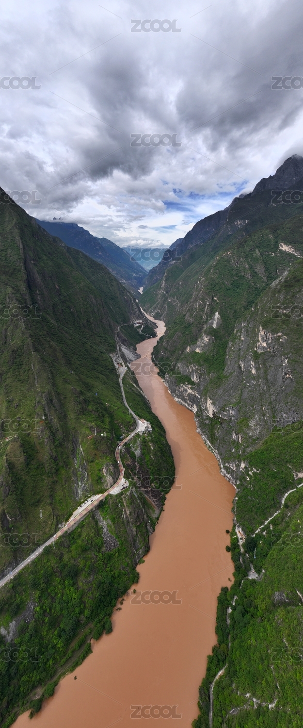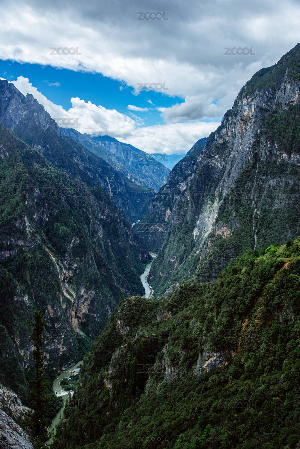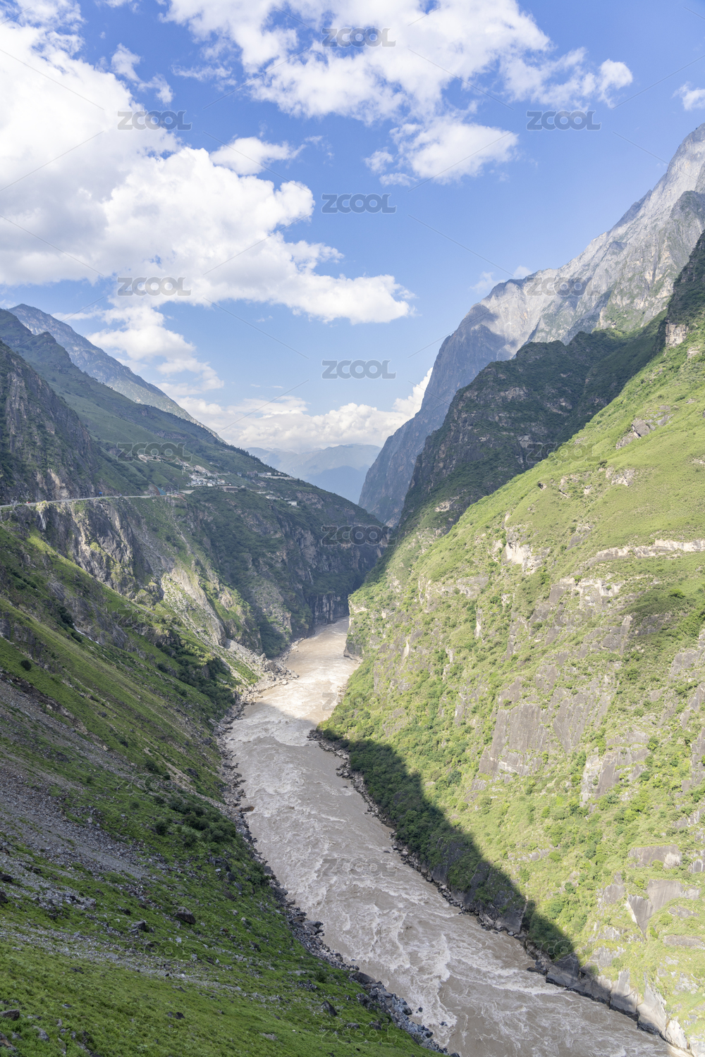中国云南香格里拉大峡谷,金沙江奔流而过