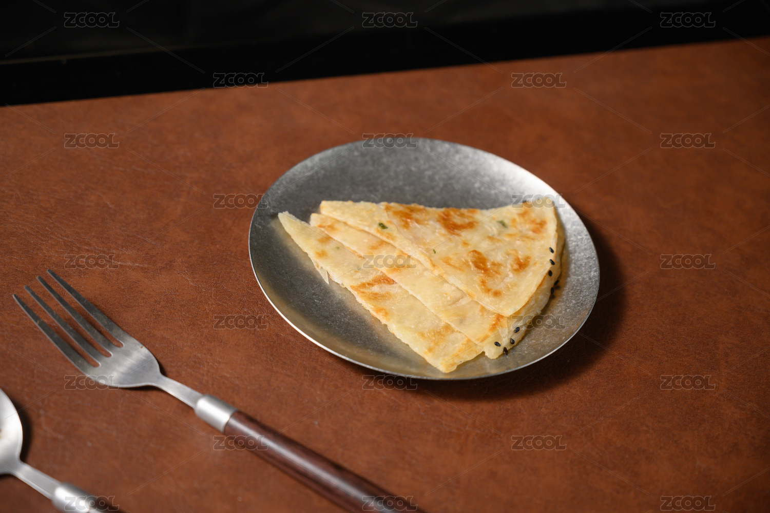 桌面上的盘子里的美味可口的香煎芋丝糕