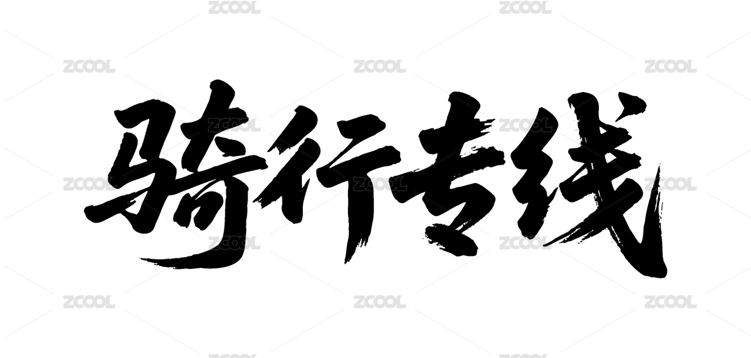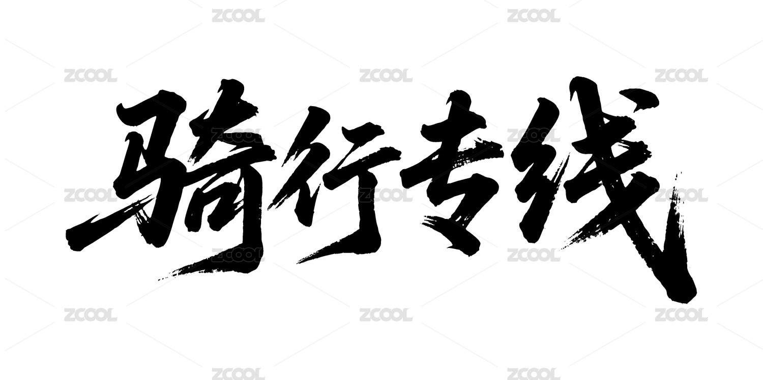 骑行专线矢量书法手写毛笔字
