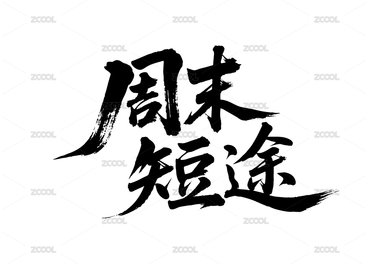 周末短途矢量书法手写毛笔字