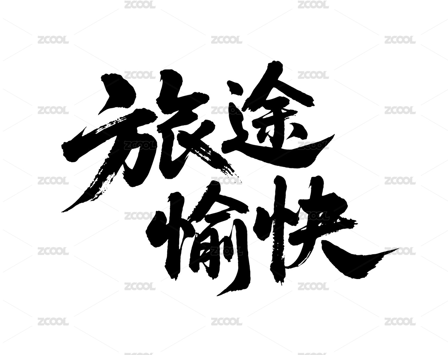 旅途愉快矢量书法手写毛笔字