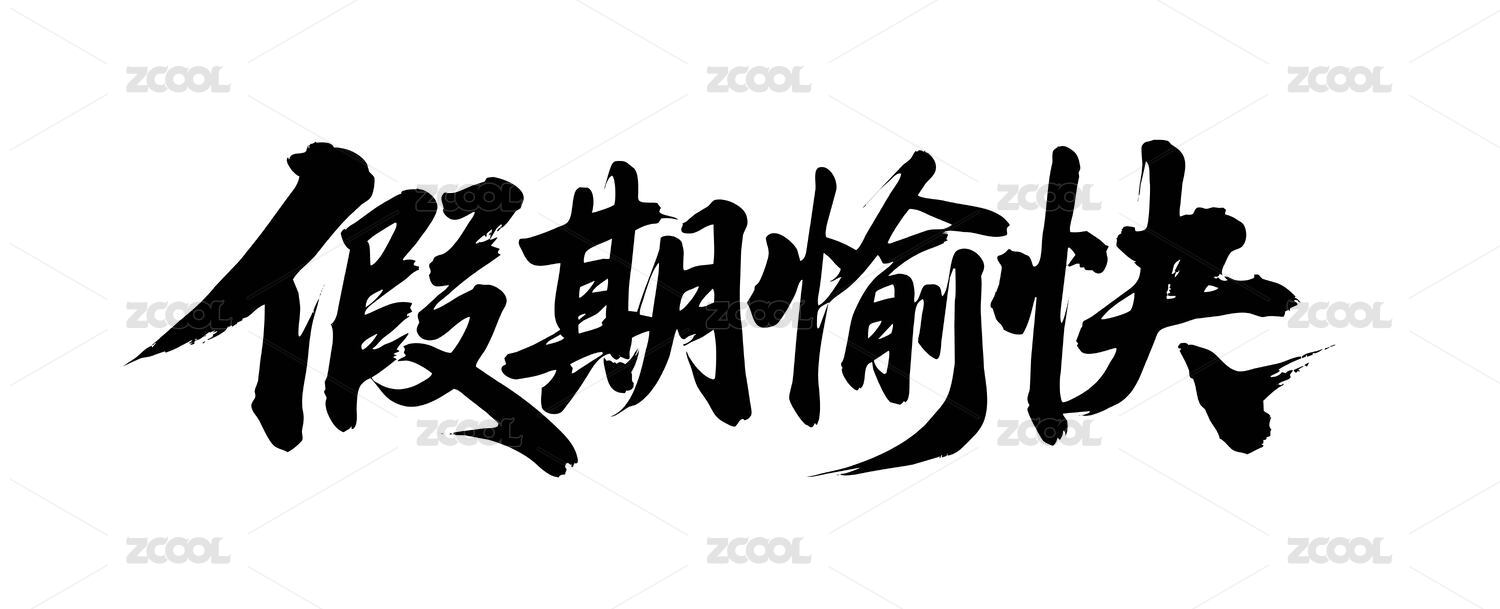 假期愉快矢量书法手写毛笔字