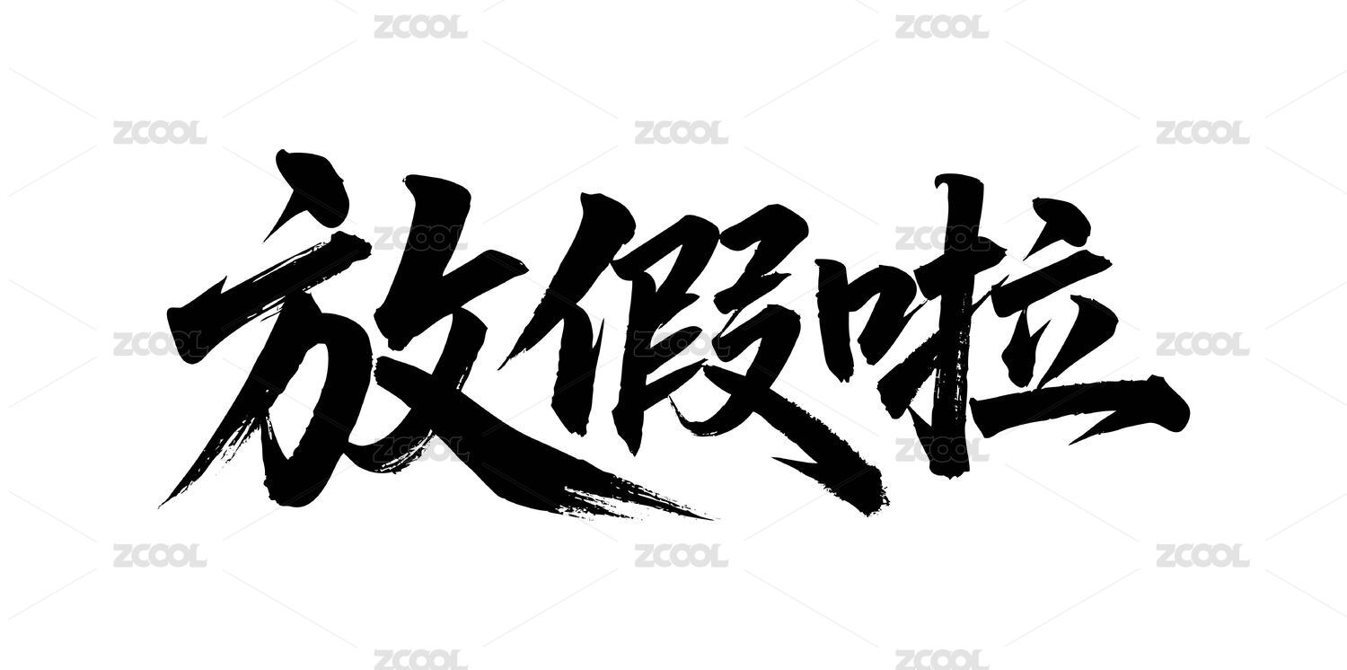 放假啦矢量书法手写毛笔字