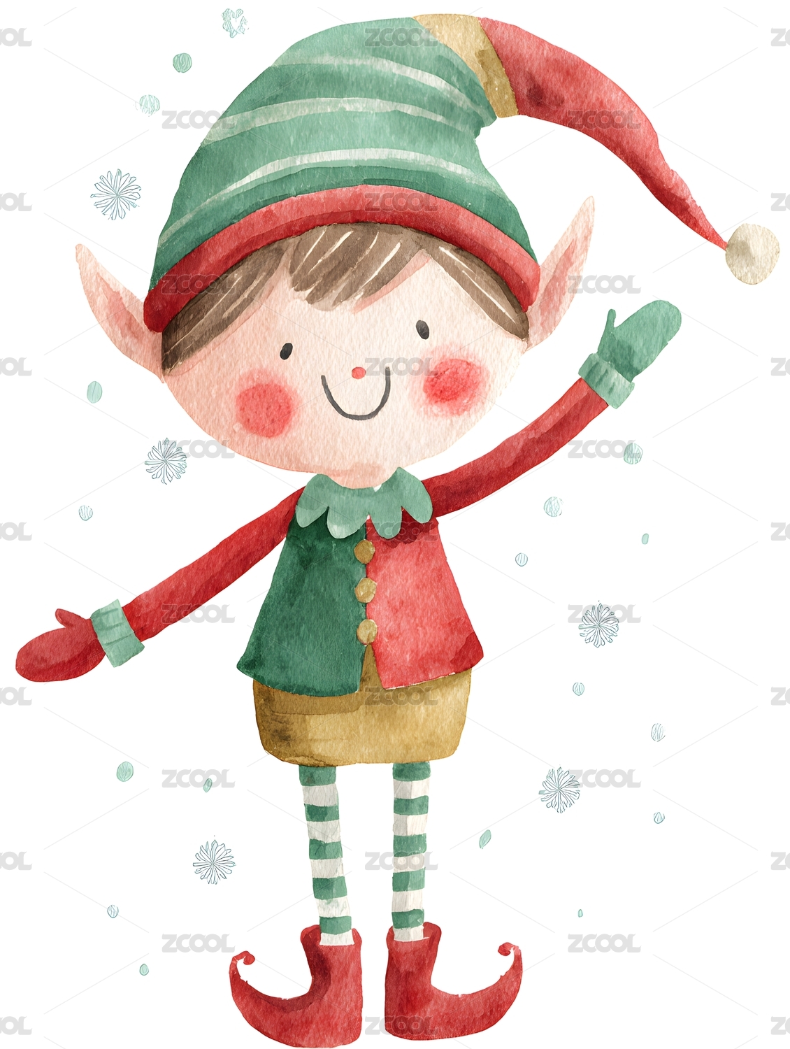 挥手微笑的圣诞小精灵