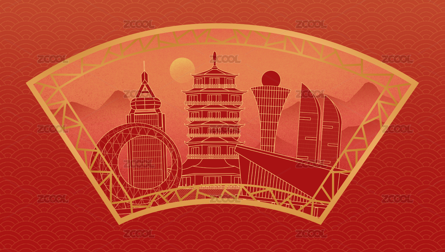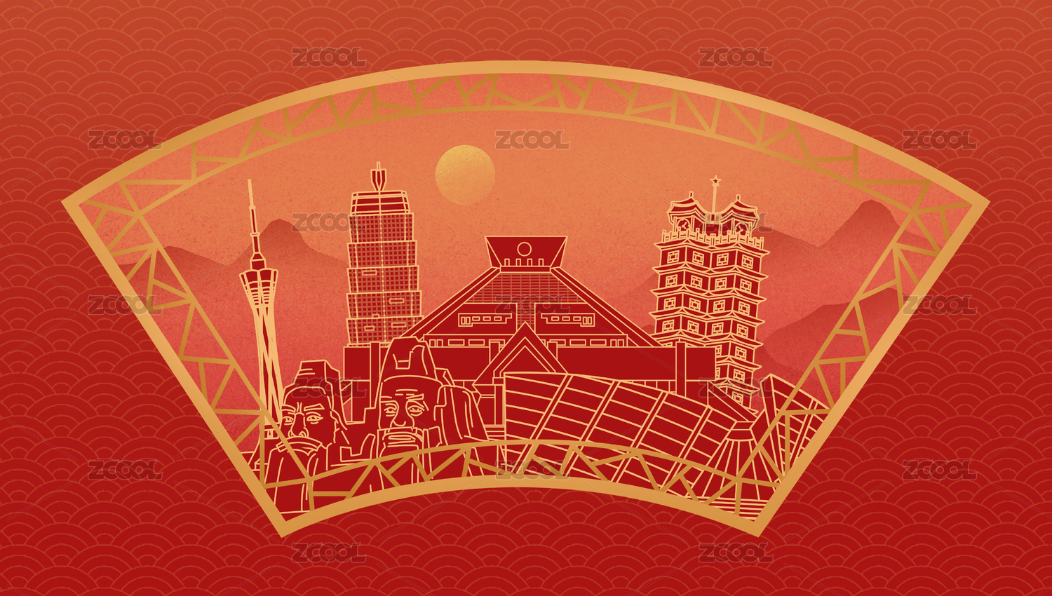 深圳红色喜庆周年庆国庆党建灯笼矢量城市