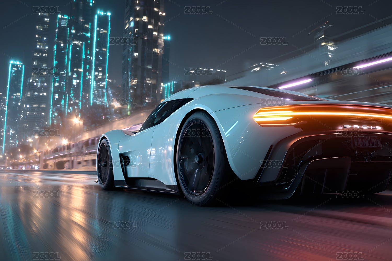 白车夜疾驰都市霓虹灯光下的速度与激情