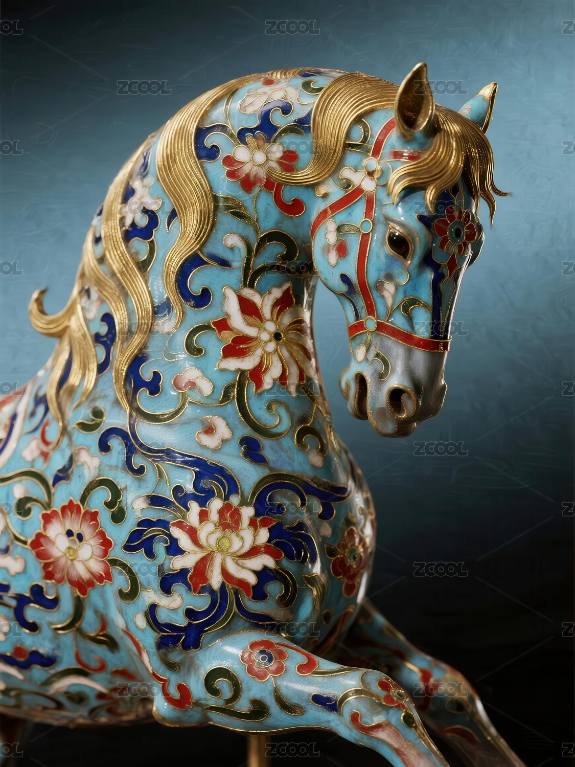 金色浮雕骏马图案