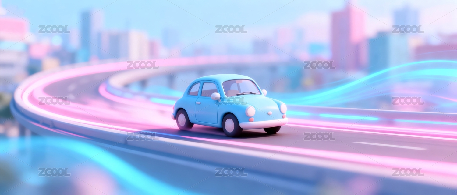 卡通汽车梦幻城市行驶场景