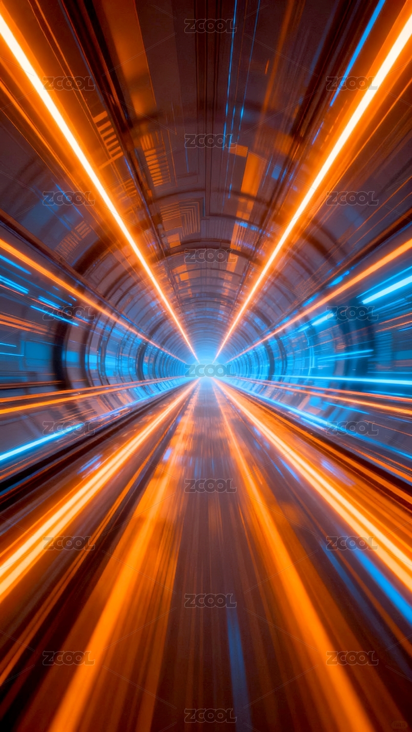 赛博朋克银光色五彩灯带隧道通道3D插画