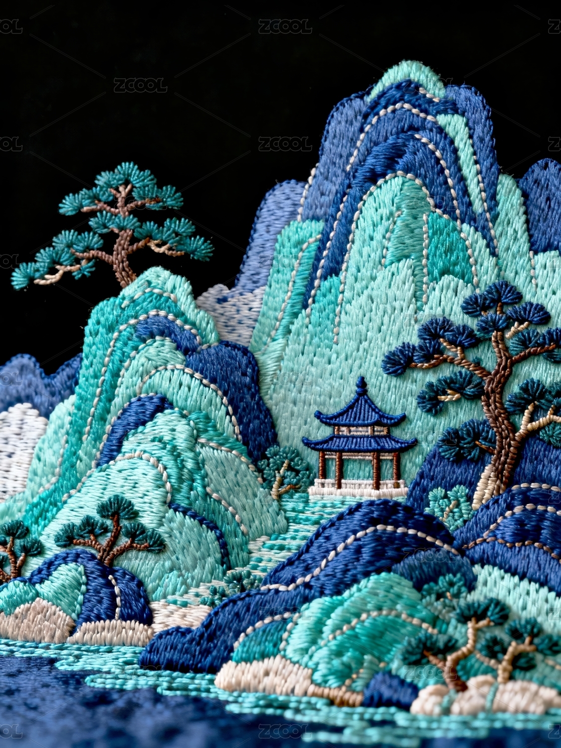 山水河流刺绣图案