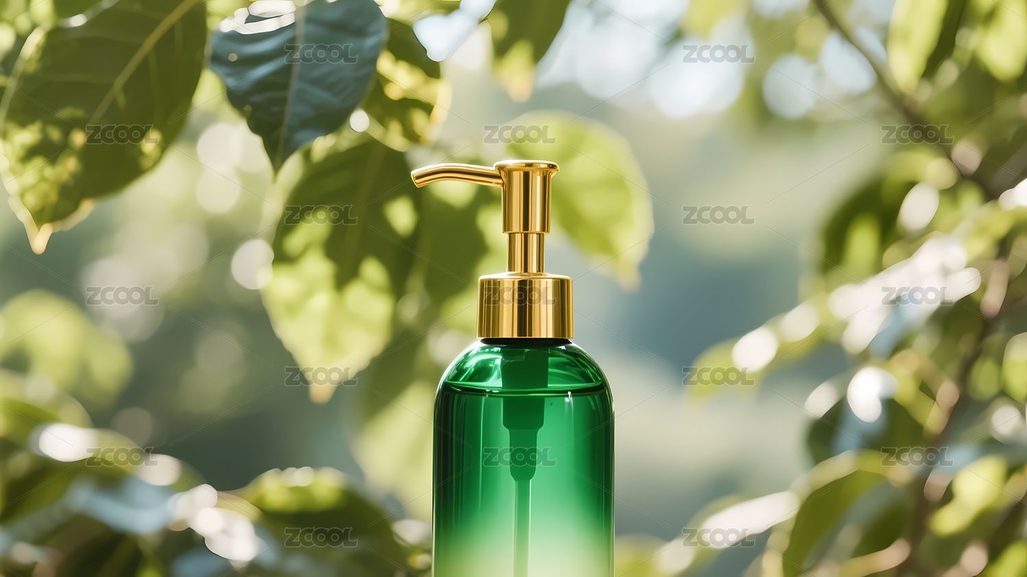 绿色瓶身清新感美妆场景