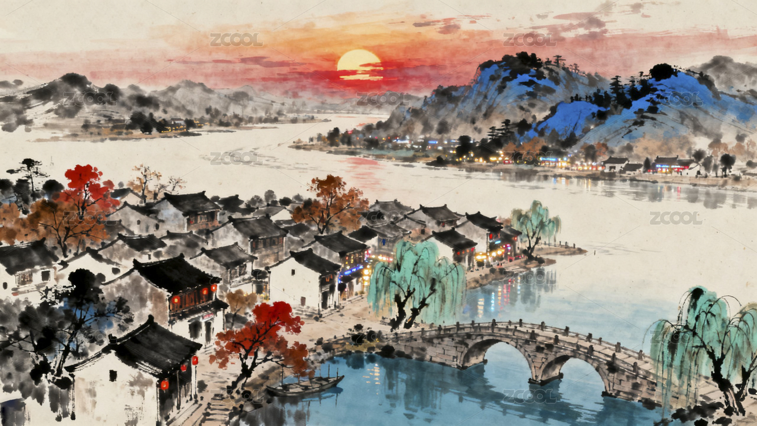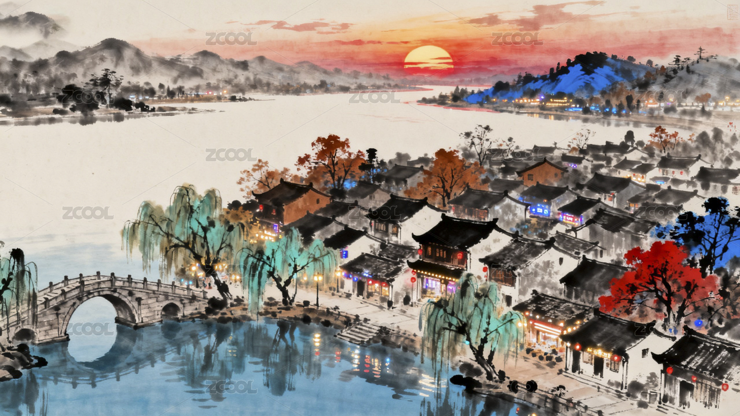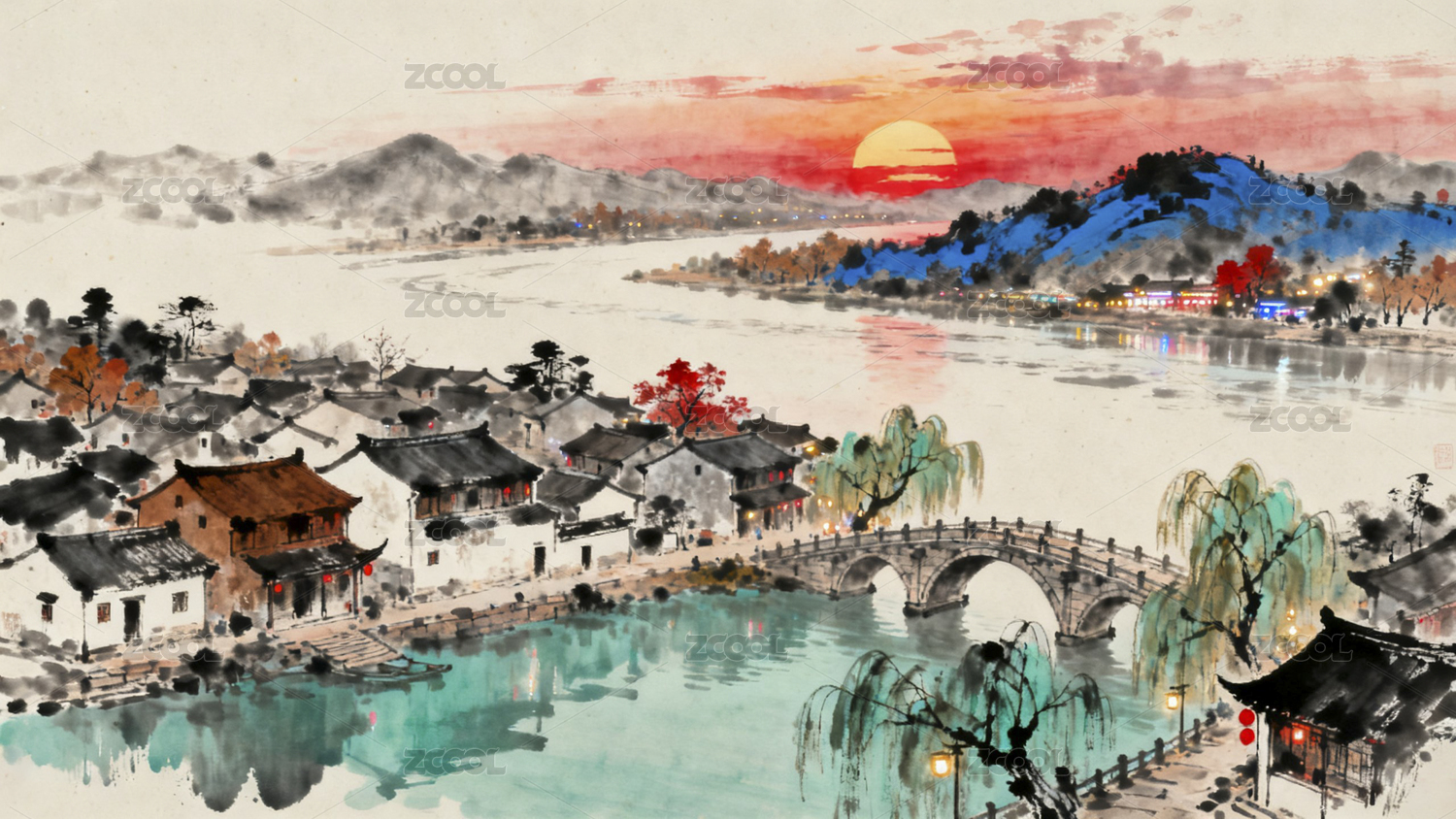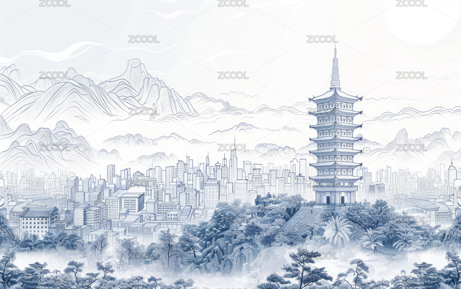 主视觉,商业,壁纸,水墨,城市,国潮,装饰,艺术,建筑,文创