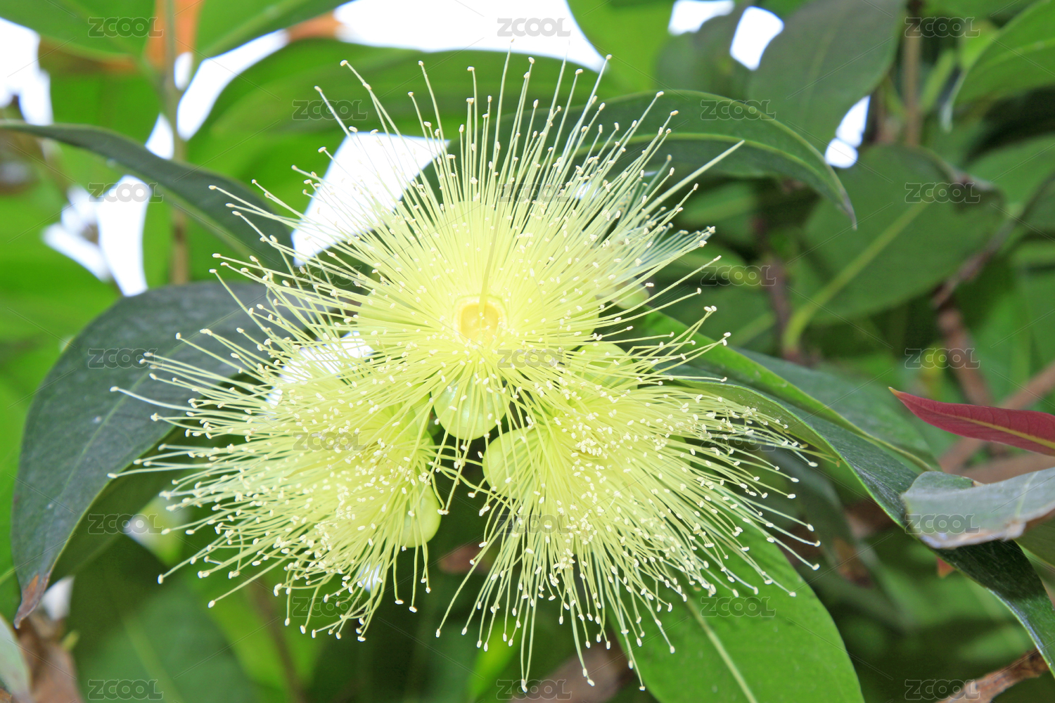 一株盛开的黄色蒲桃花朵,千丝万缕