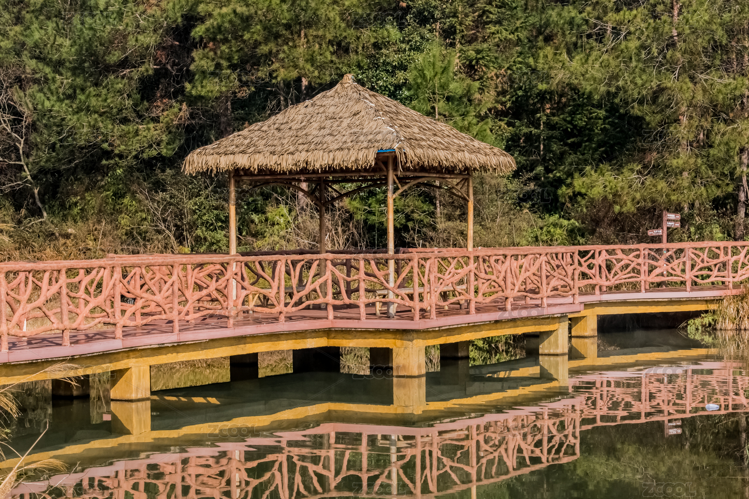 水池边的木制结构人行走廊