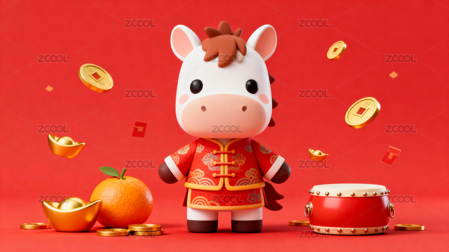 立体,背景,装饰,造型,光效,图案,红色,文化,卡通,牛