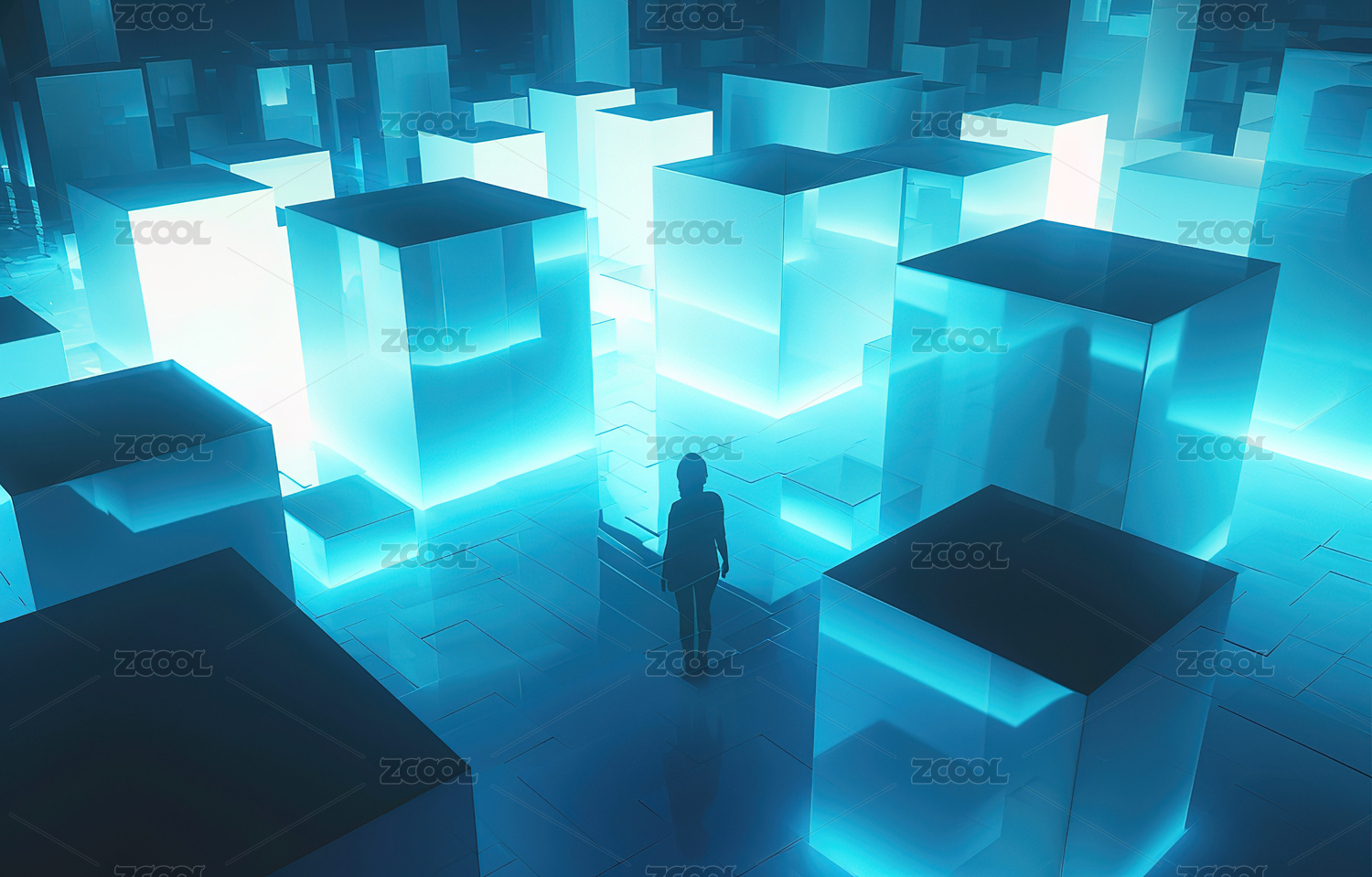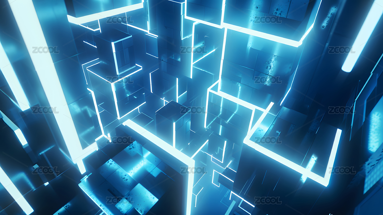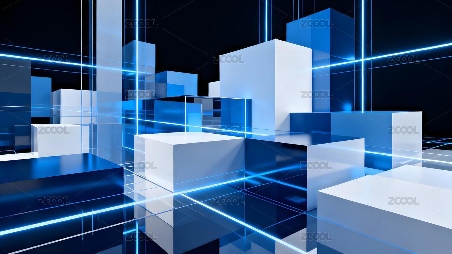 蓝色光效中的立体方块结构