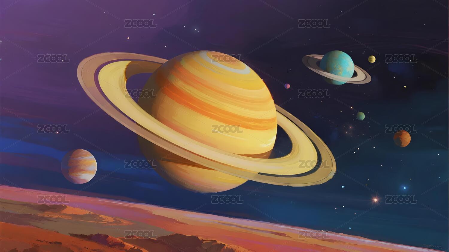 梦幻宇宙场景星系行星彗星绚丽多彩
