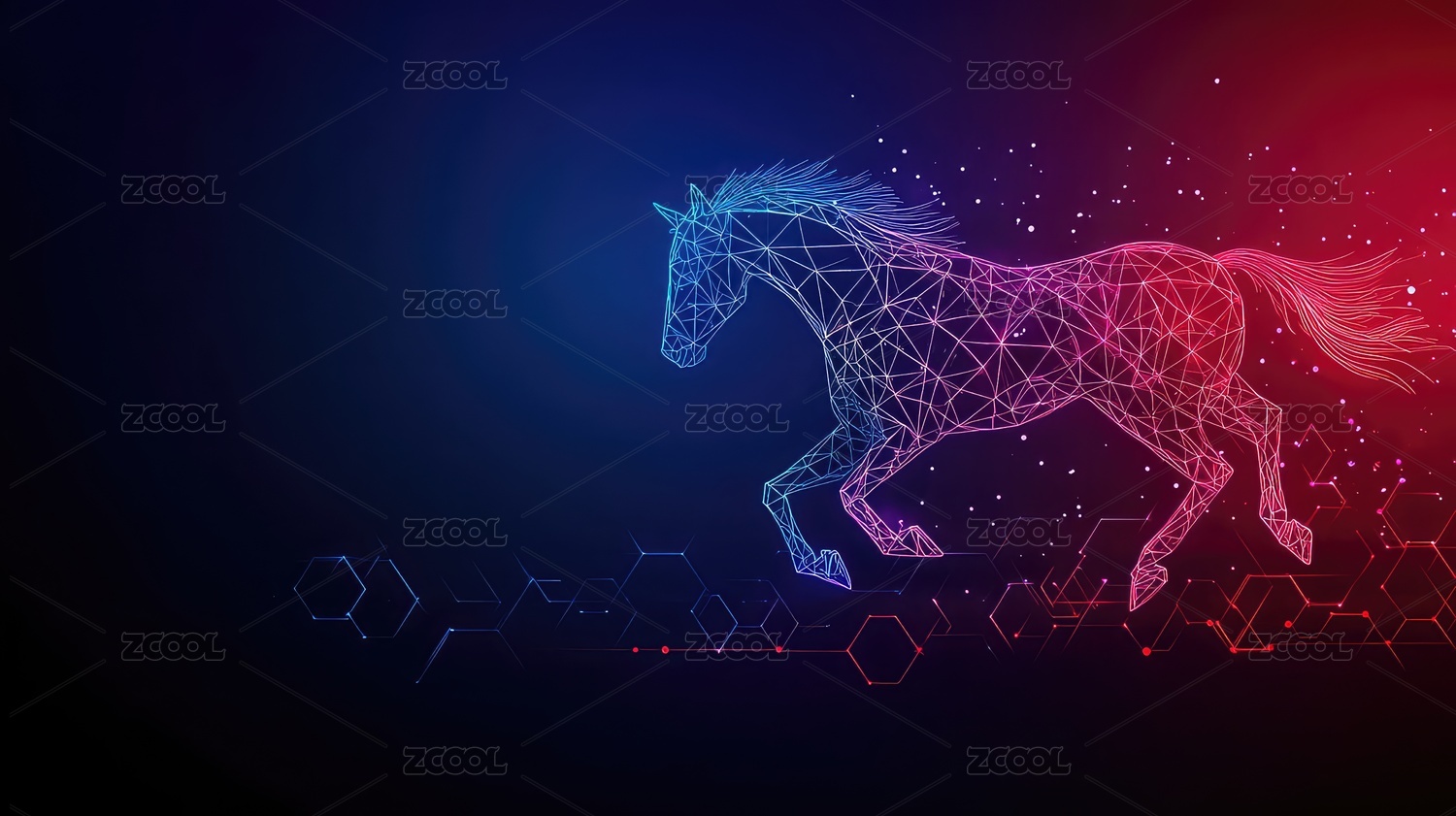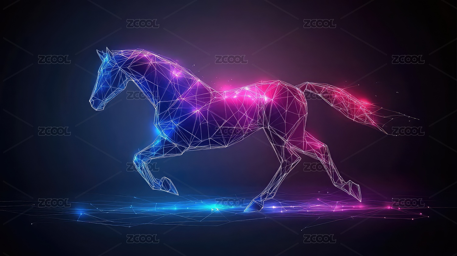 抽象的奔跑马匹科技感十足