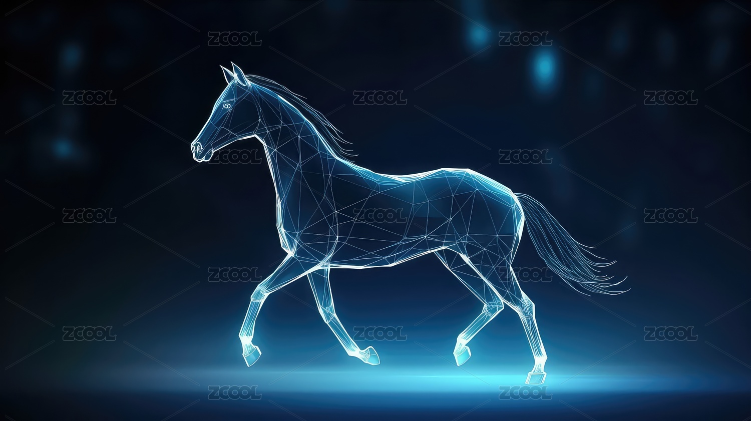 抽象线框马在科技感背景中奔跑