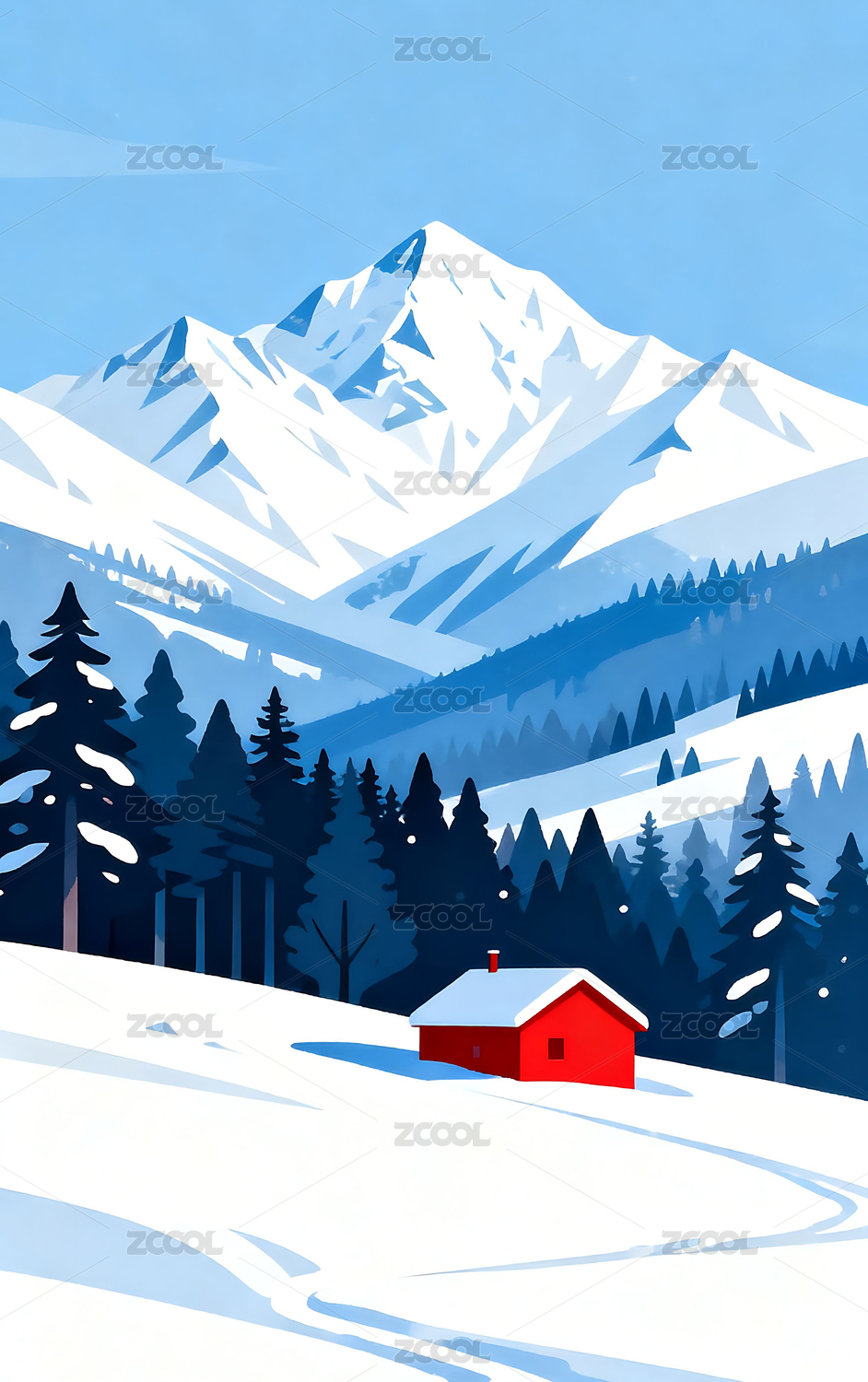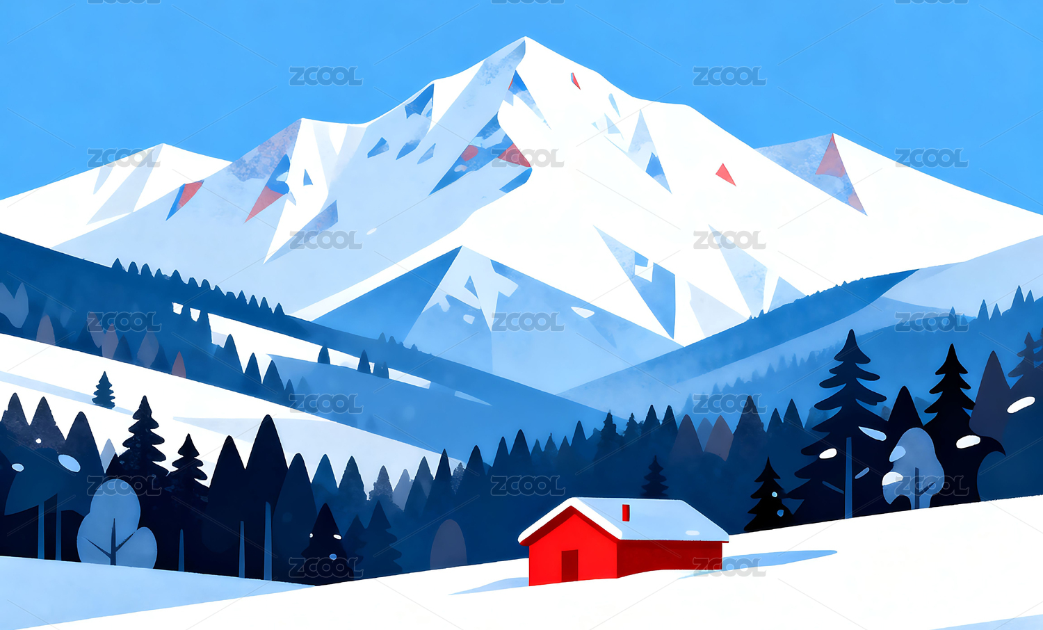 雪域探秘雪山之巅宁静之旅冬日仙雪景插画