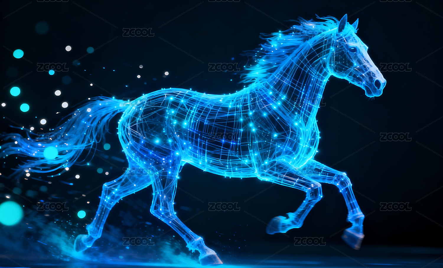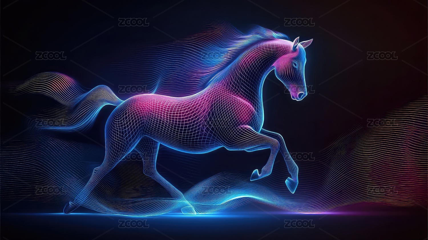 抽象风格的奔跑的马儿呈现科技感