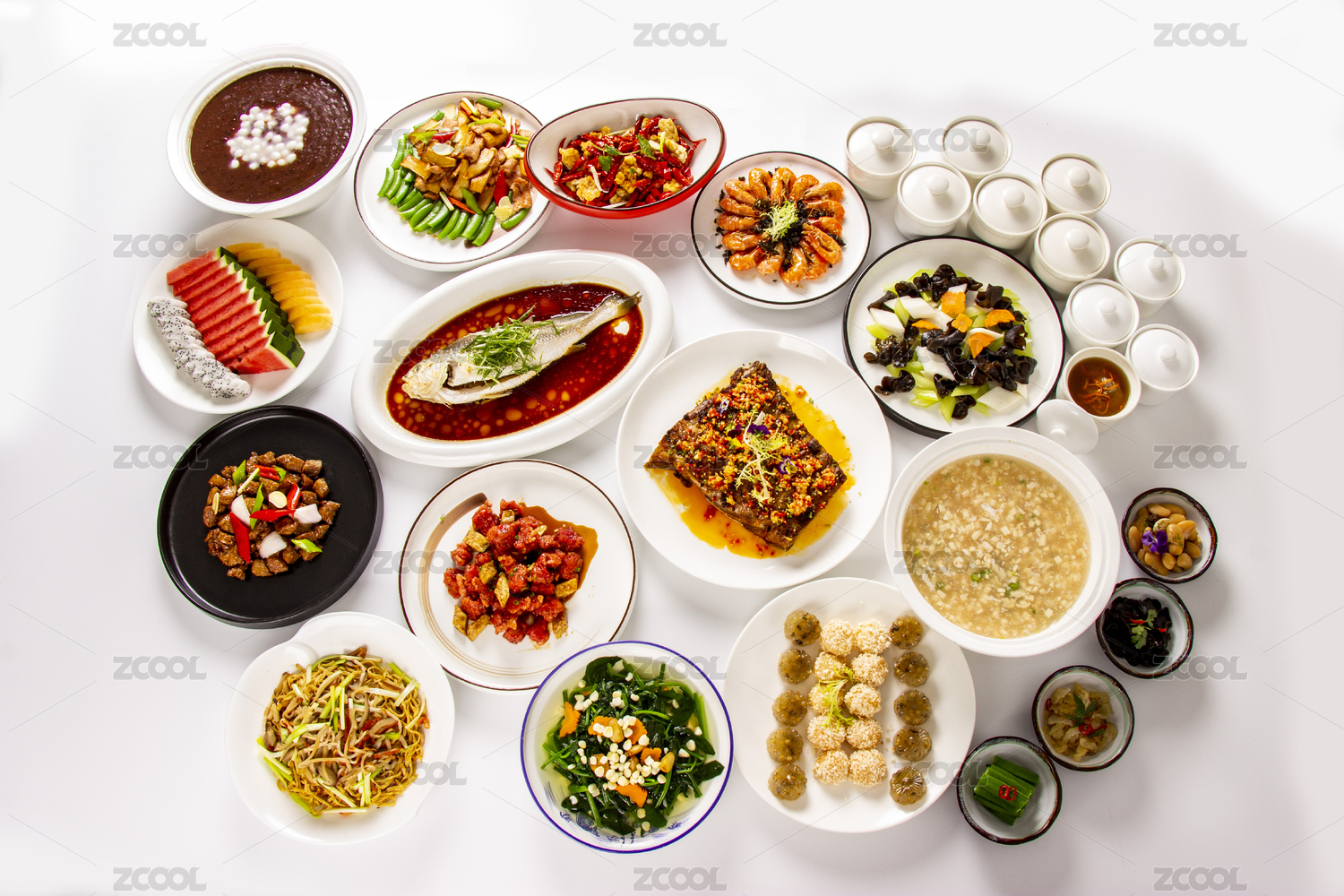 传统,装饰,色彩,美味,精致,餐桌,菜肴,鱼,虾,肉丸