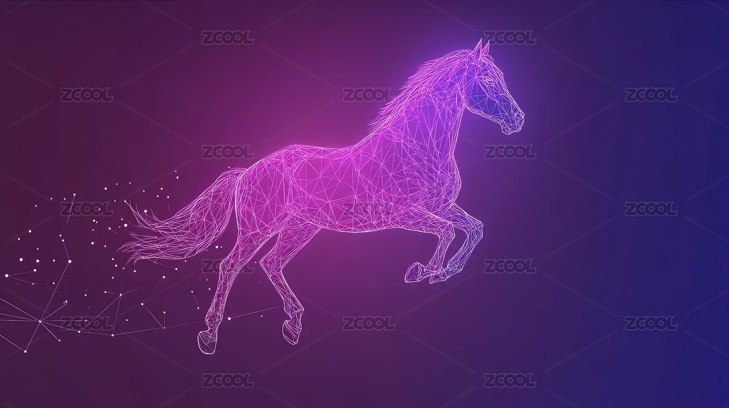 抽象的奔腾骏马图像散发着科技感和艺术气息