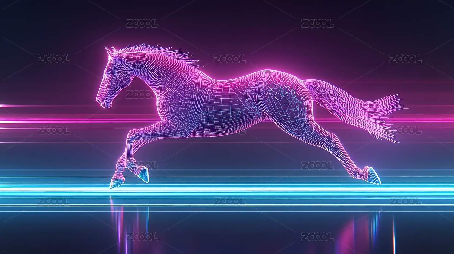奔跑的马儿蓝紫渐变霓虹灯风格
