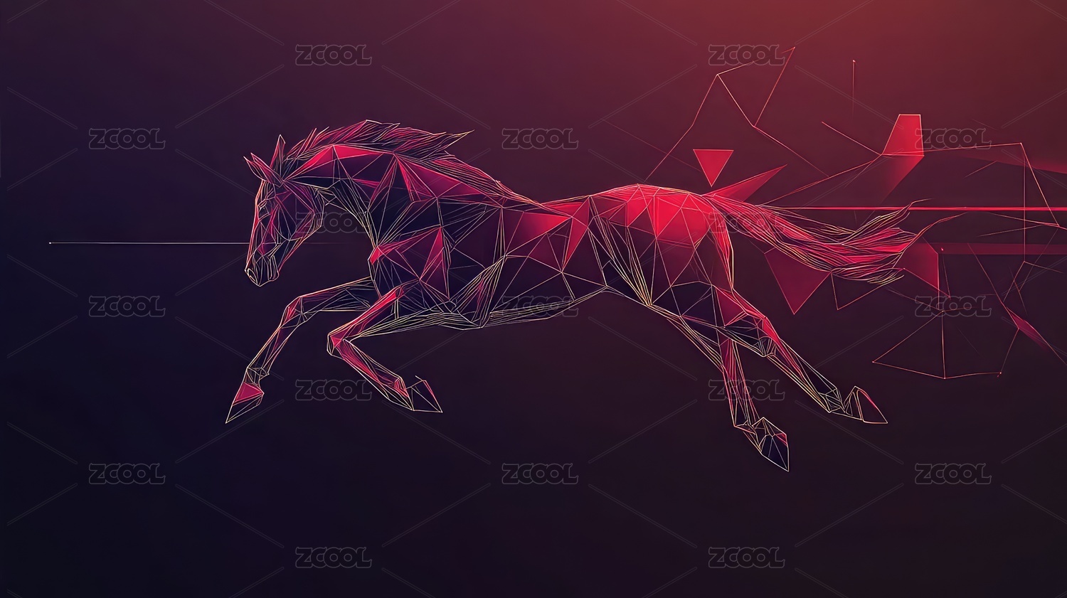 抽象多边形飞马奔跑于霓虹背景中