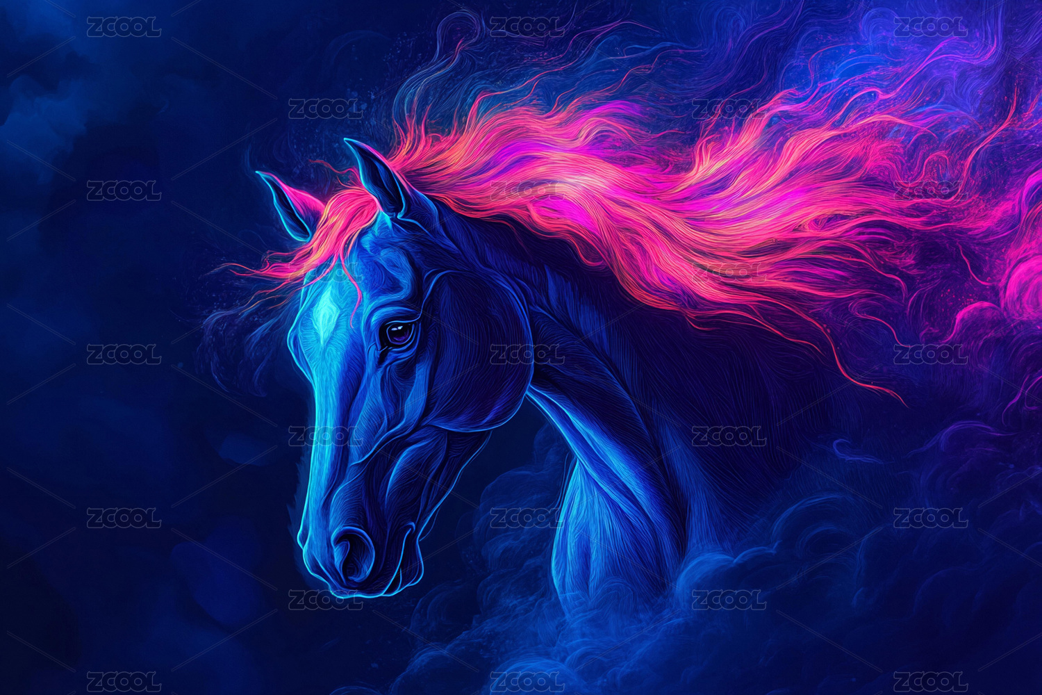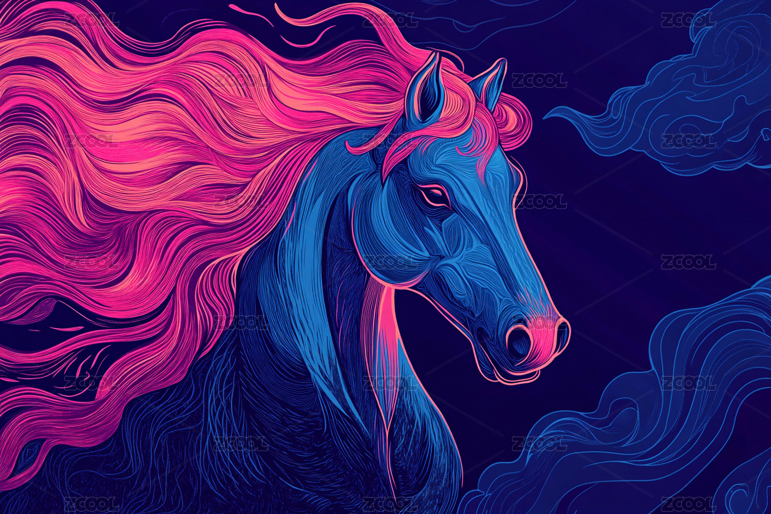 赛博霓虹炫彩骏马插画