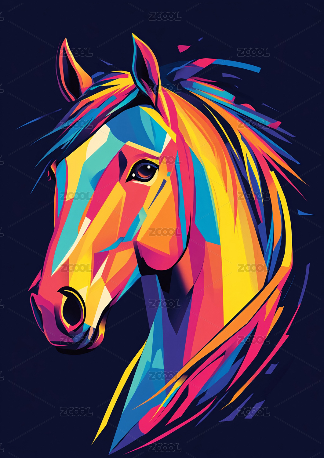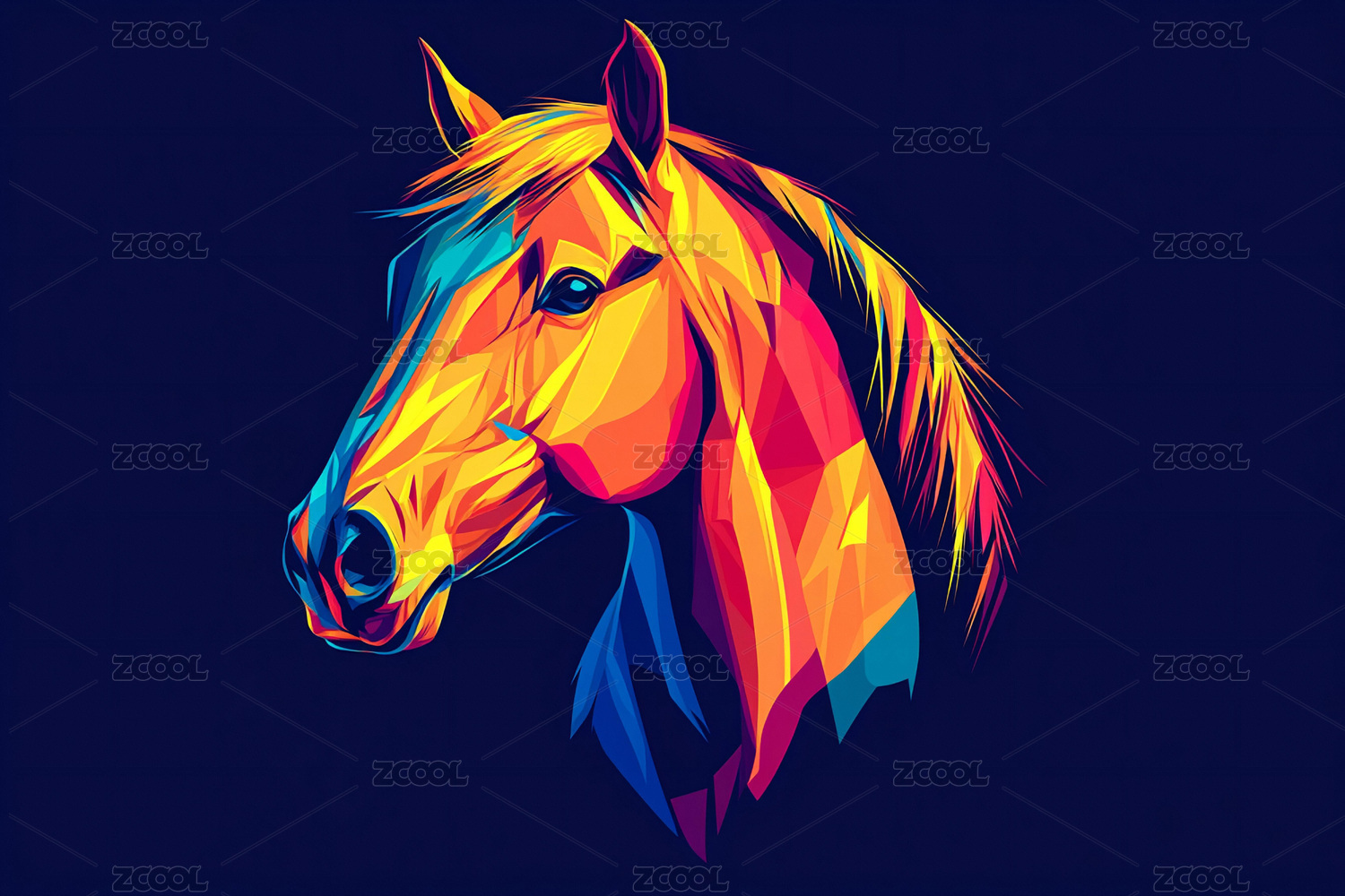多彩几何风格奔跑骏马