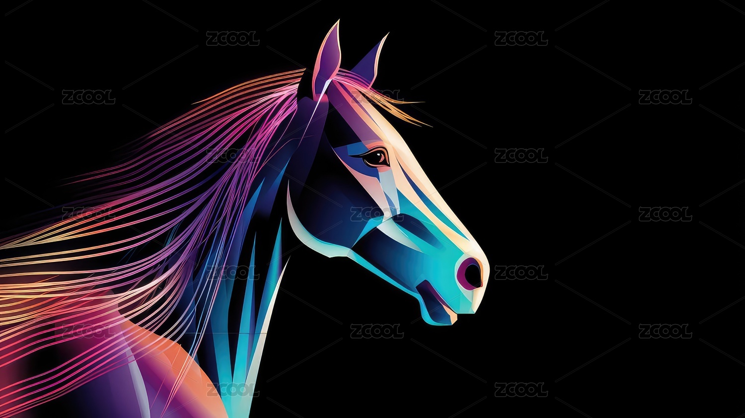 抽象,图案,艺术,光影,渐变,动物,设计,彩色,马头,鬃毛