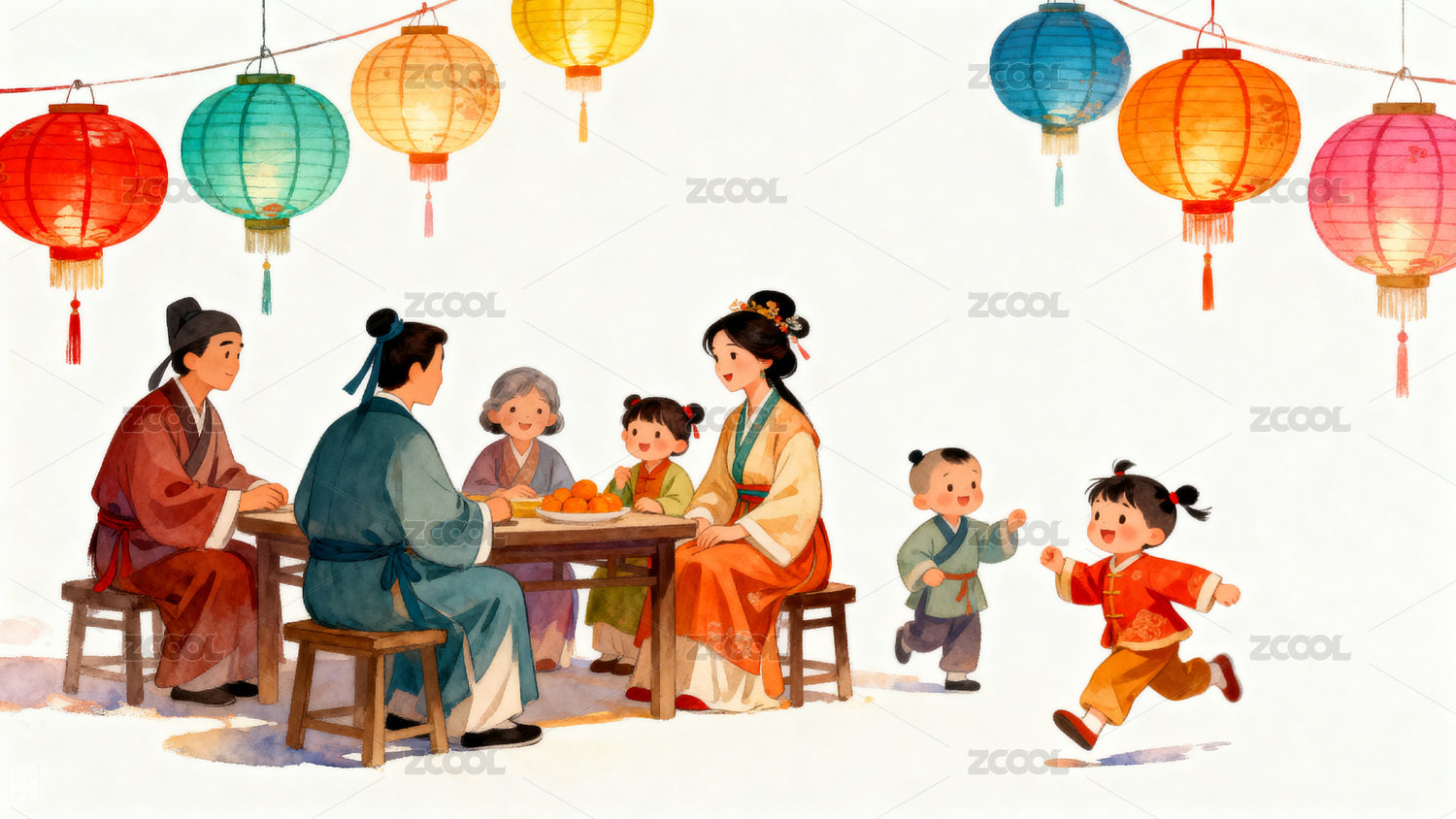 传统,食物,庭院,表情,月亮,团圆,家人,赏月,古装,建筑