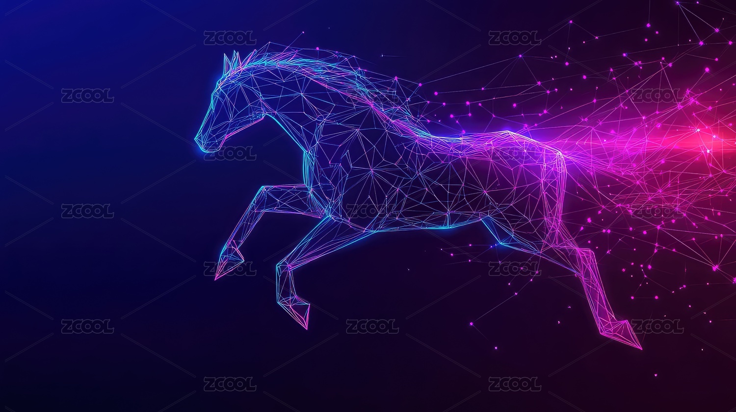 科技感十足的奔跑的马儿线条勾勒充满未来感