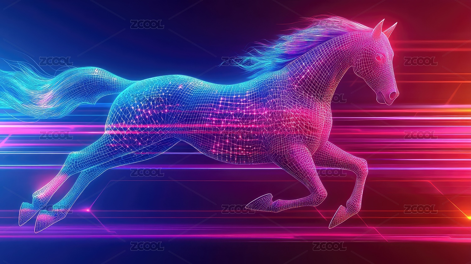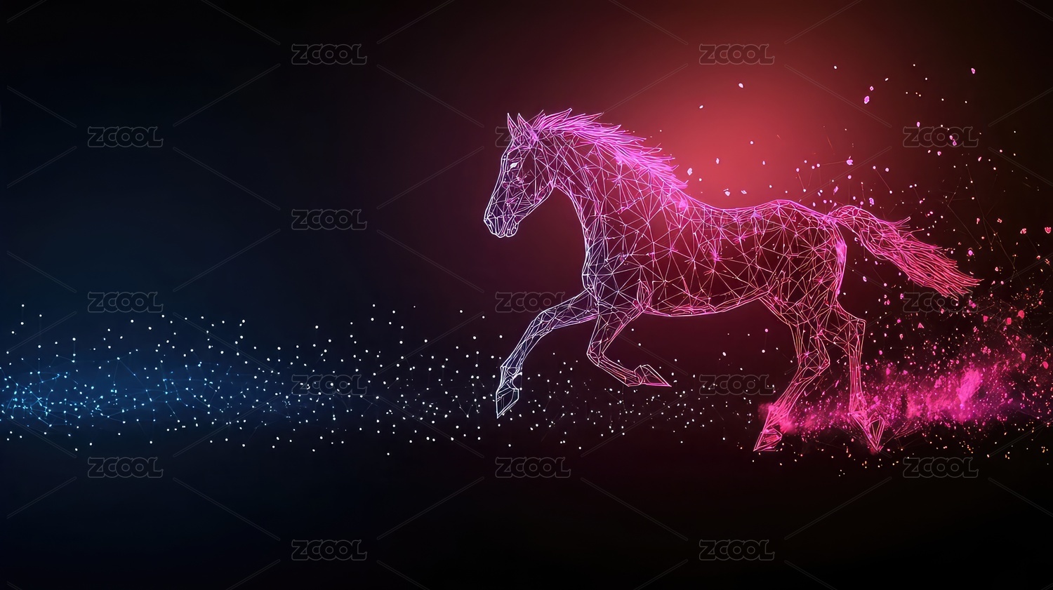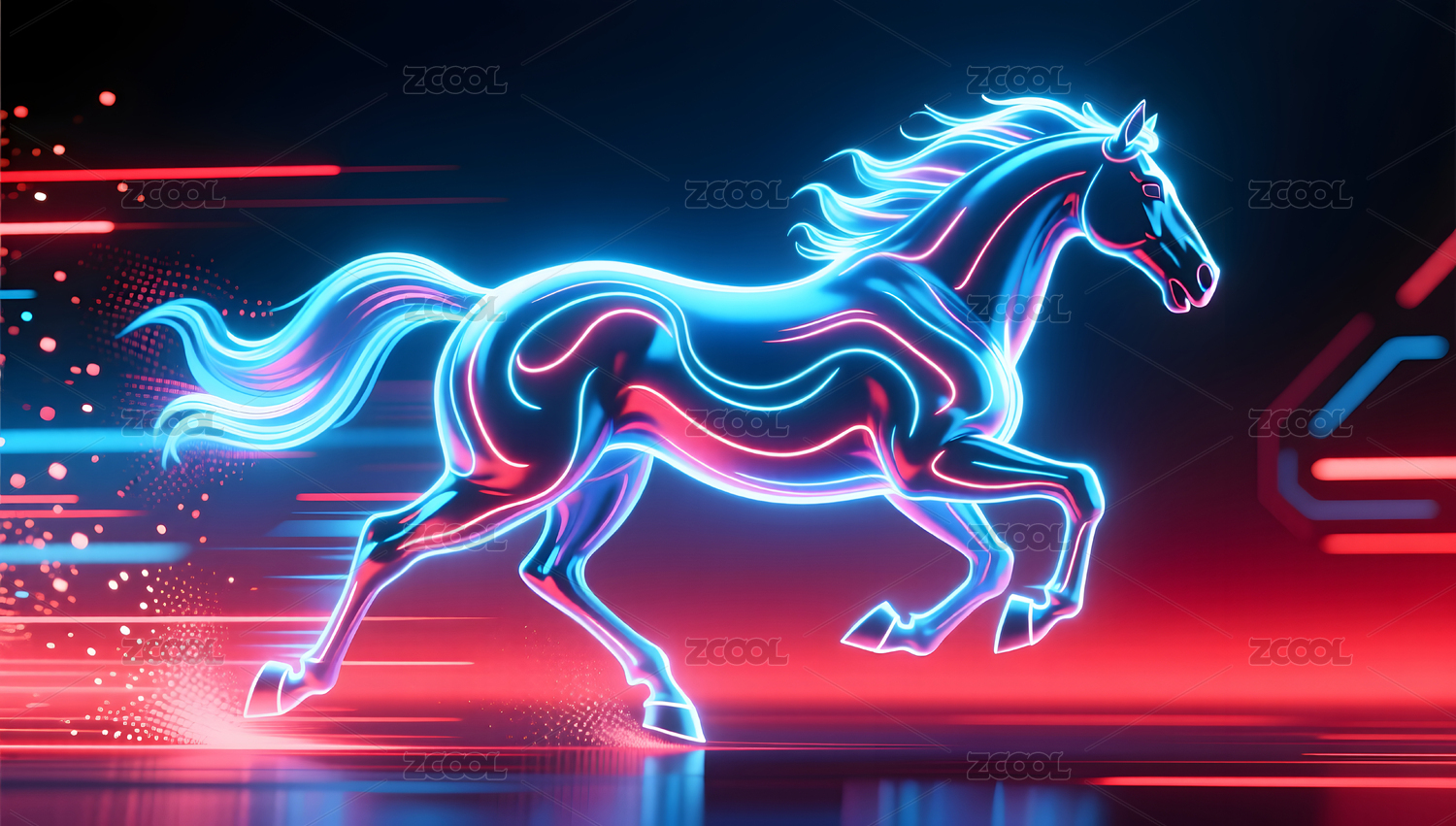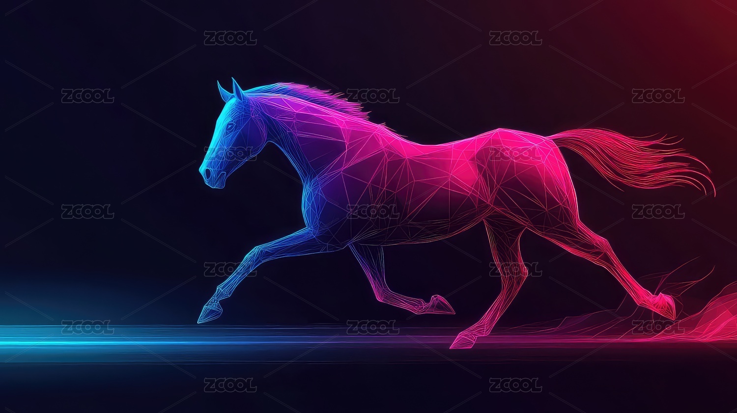 抽象线条勾勒奔跑的马匹霓虹灯光